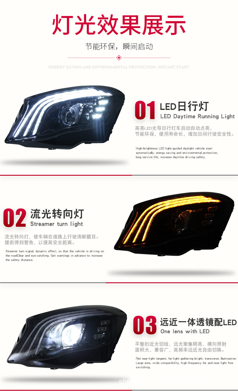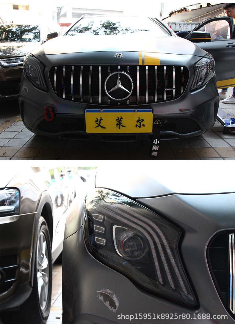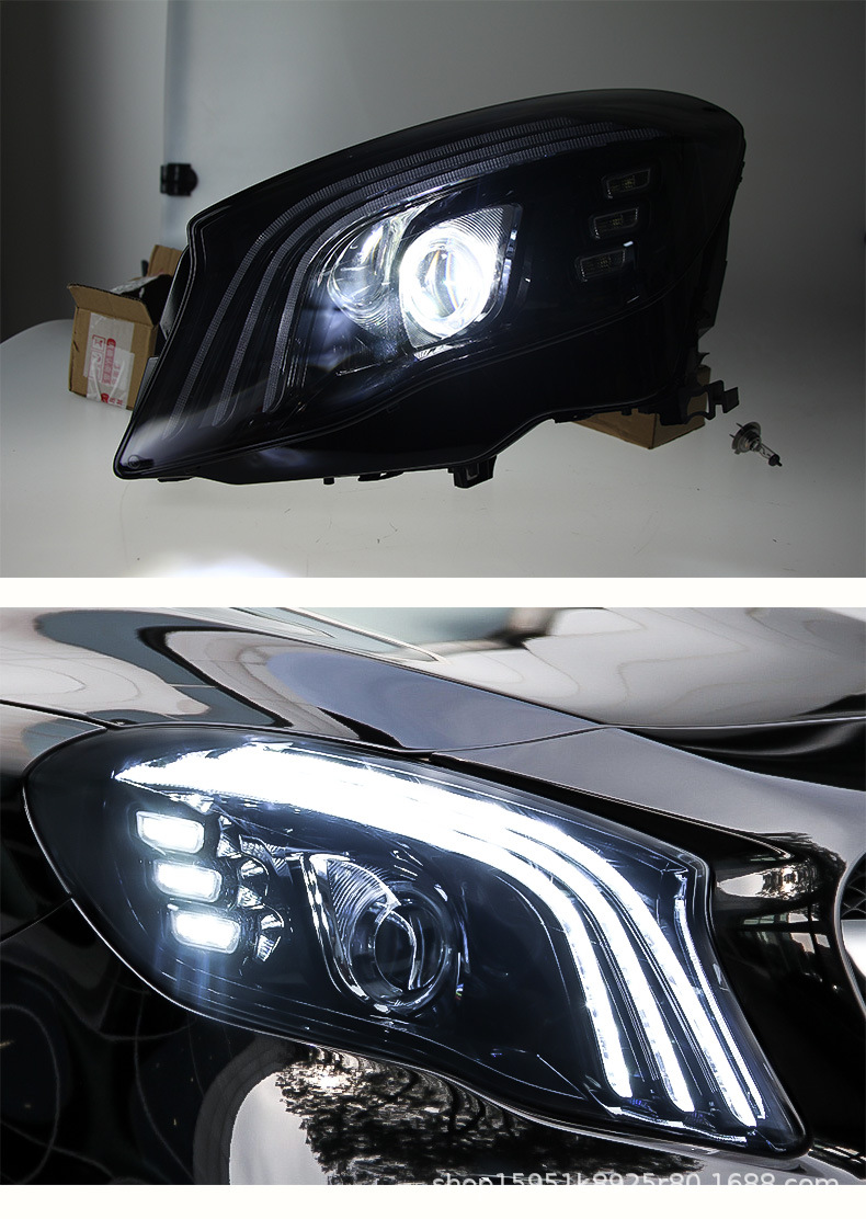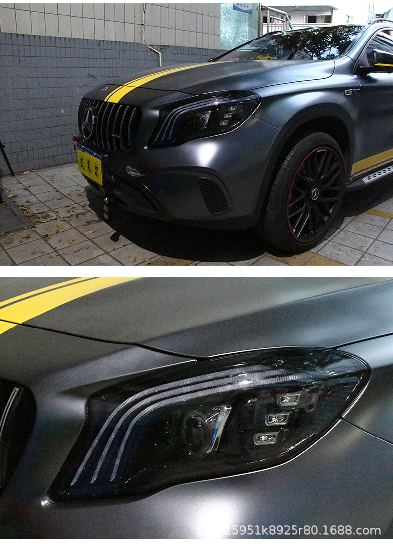 LED DRL Headlight Assembly with Blue Streamer Turn Signal for Mercedes-Benz GLA GLA200 GLA260