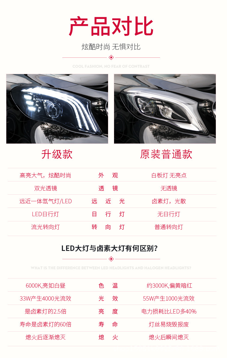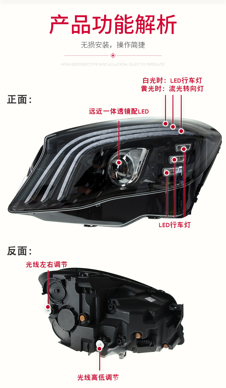 - Stylish Illumination: Features integrated LED Daytime Running Lights (DRL) and a distinctive blue streamer dynamic turn signal, significantly upgrading your vehicle’s aesthetic appeal and modernizing its look.