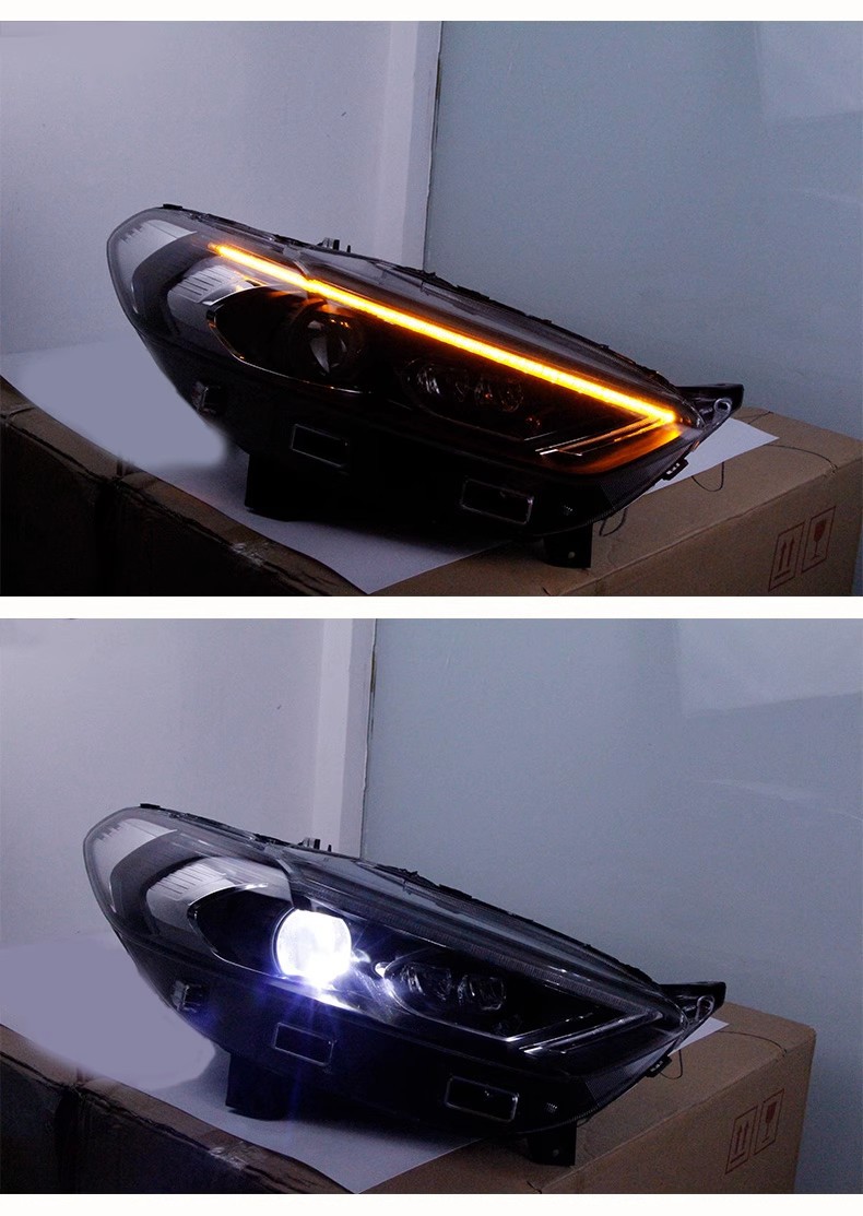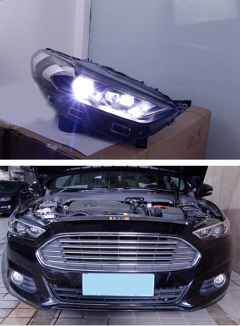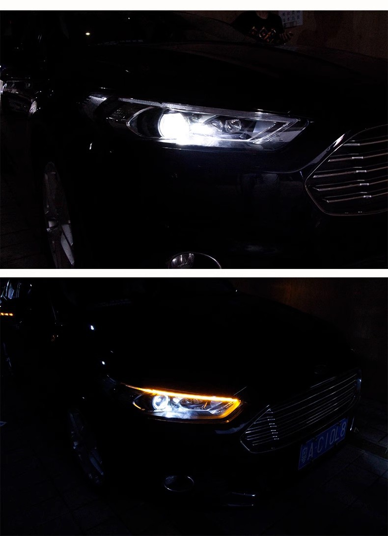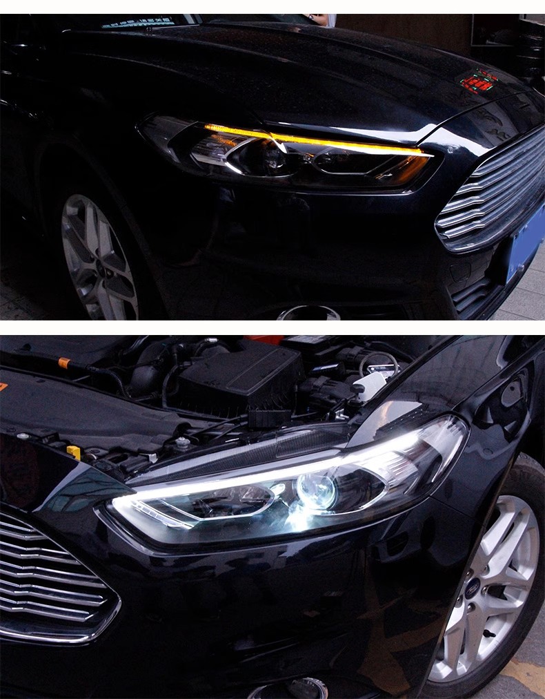 LED DRL Headlight Assembly with Flowing Turn Signal and Xenon Lamp for Ford Mondeo 2013-2016