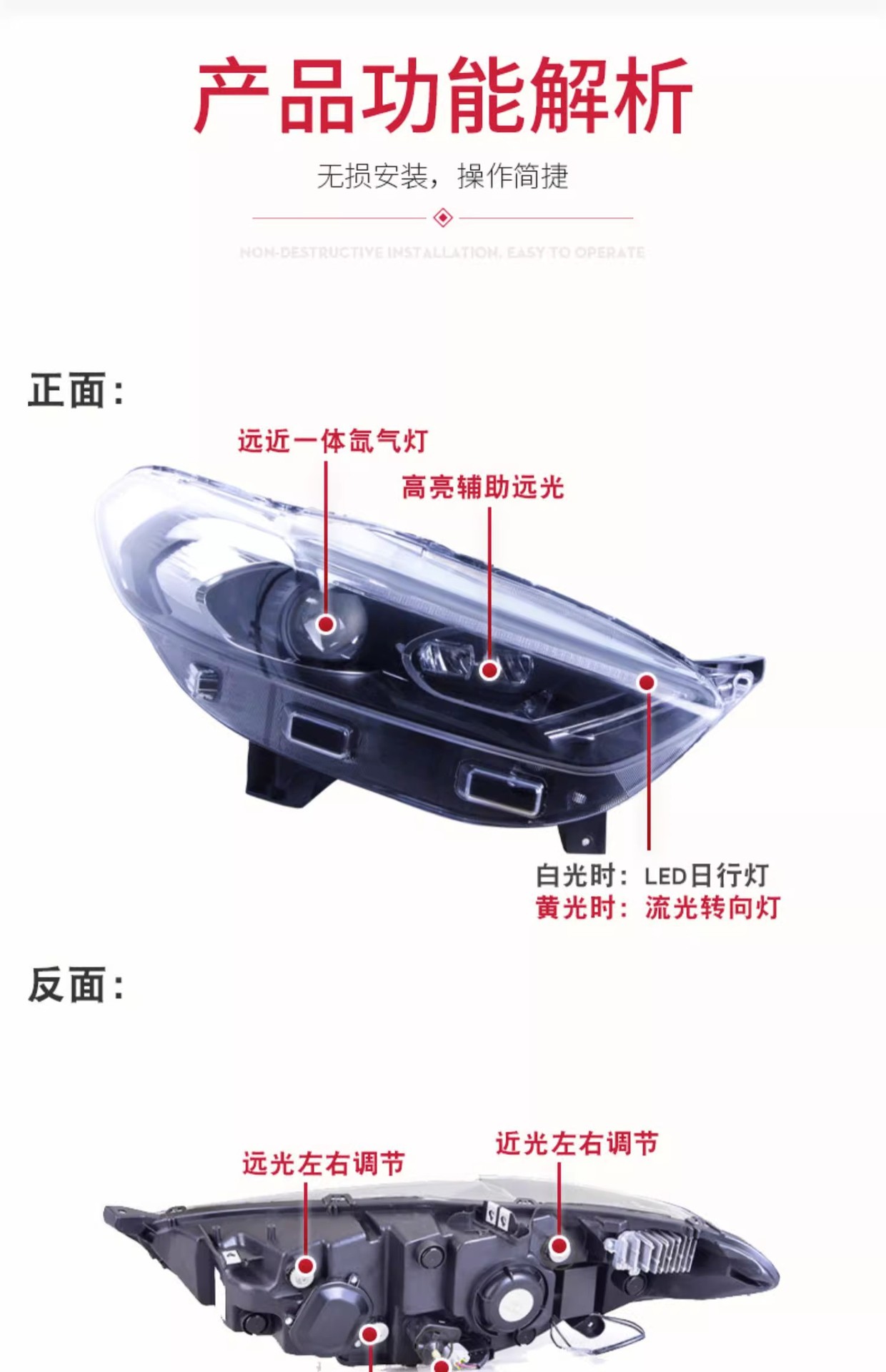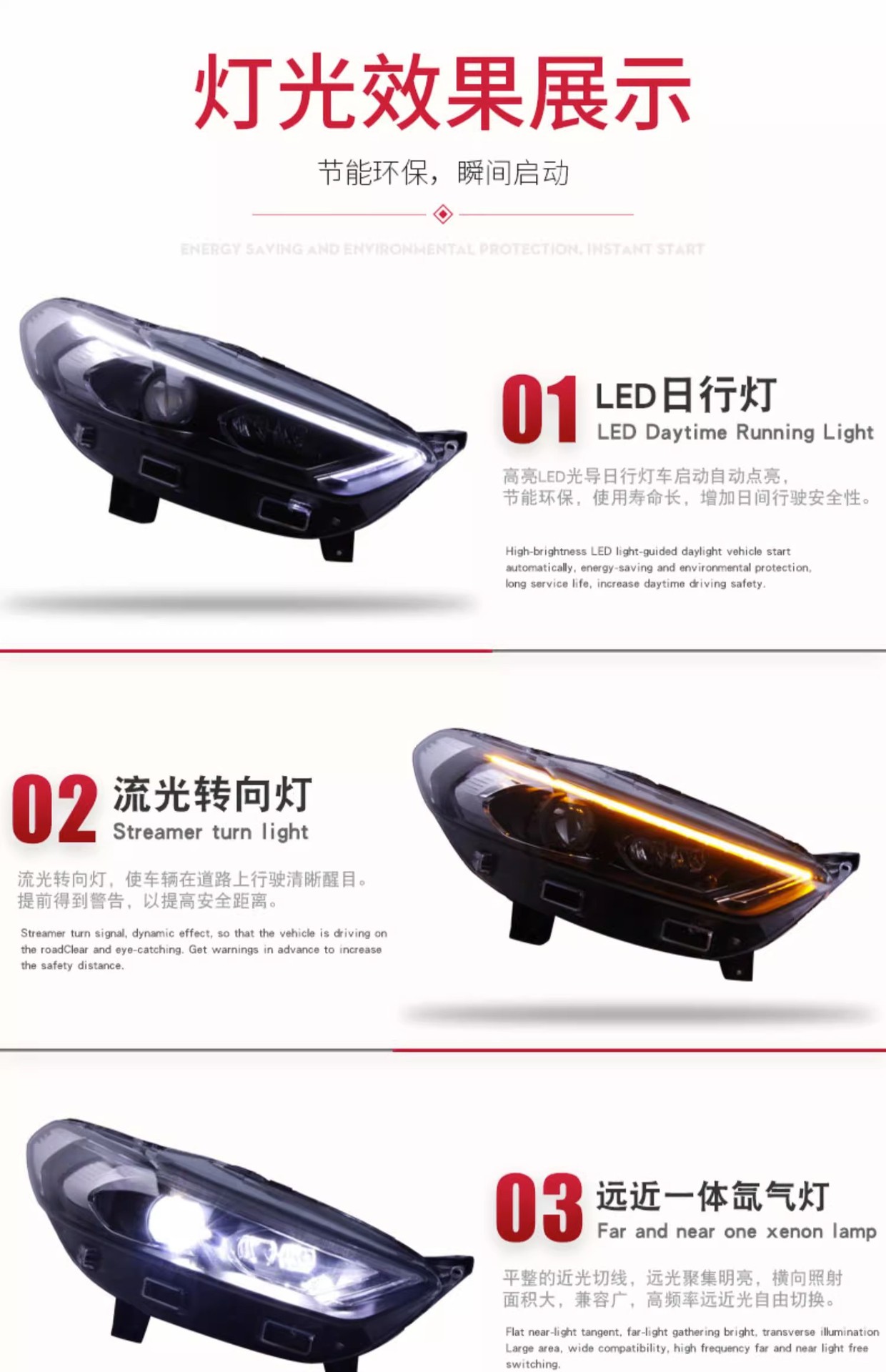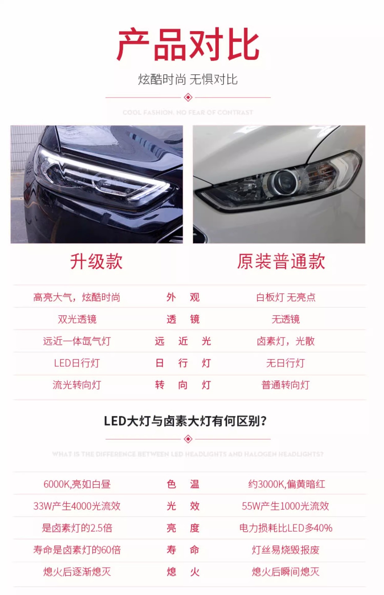 LED DRL Headlight Assembly with Flowing Turn Signal and Xenon Lamp for Ford Mondeo 2013-2016