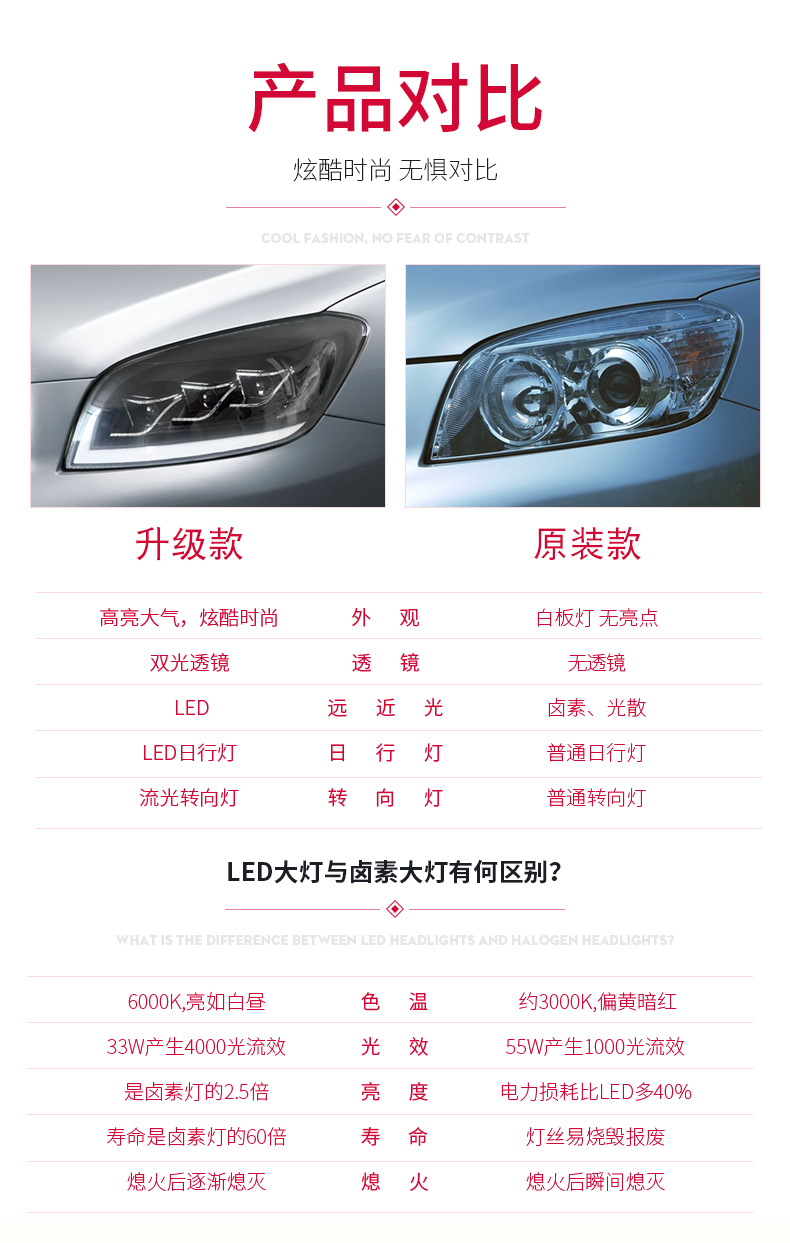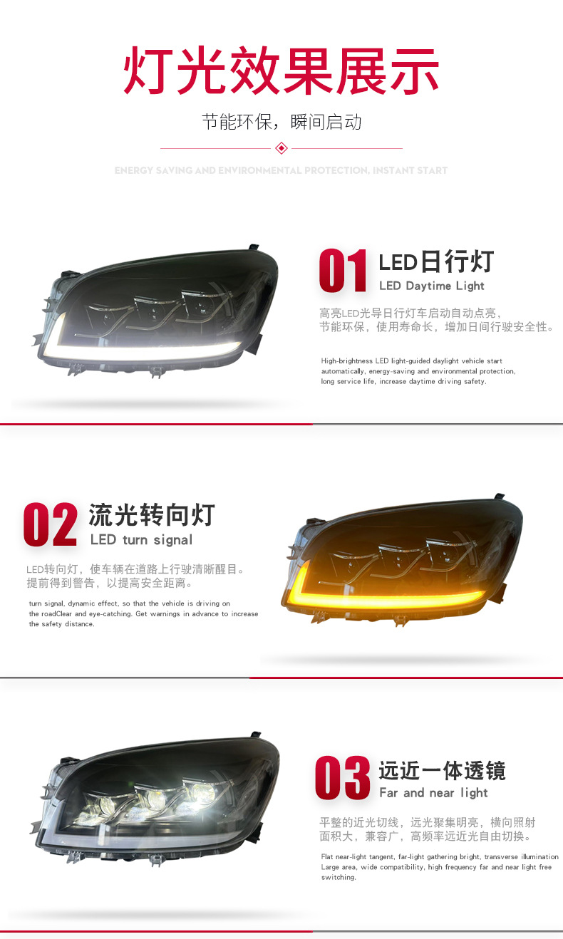 - Performance-Driven Design: Features integrated LED daytime running lights (DRL) and sequential flowing turn signals, enhancing visibility and modern aesthetics, as shown in the product image.