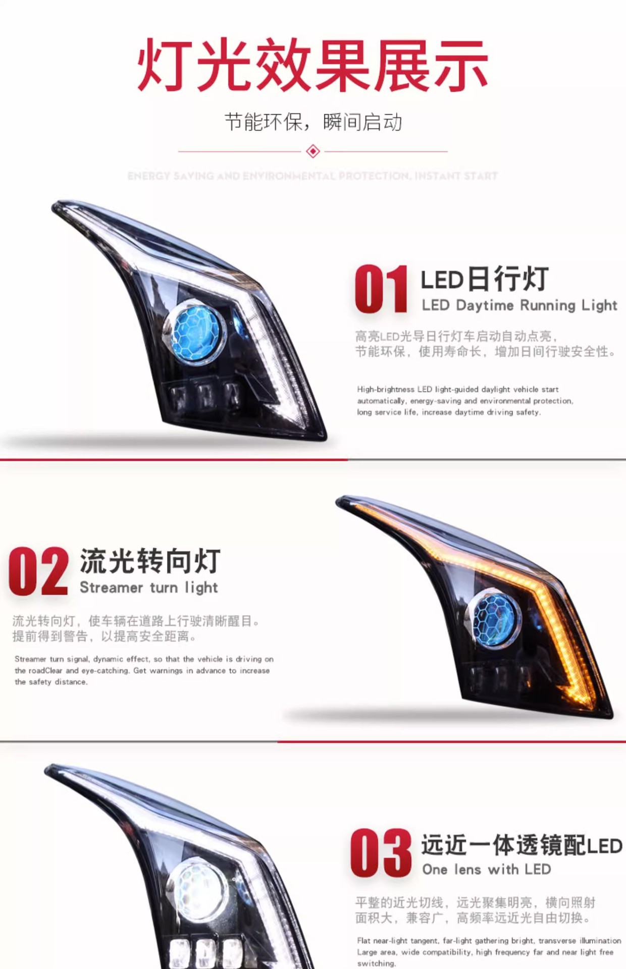 - Direct Fitment: A perfect replacement headlight assembly. Compatible with Cadillac ATSL. Features integrated LED DRL and flowing turn signals.