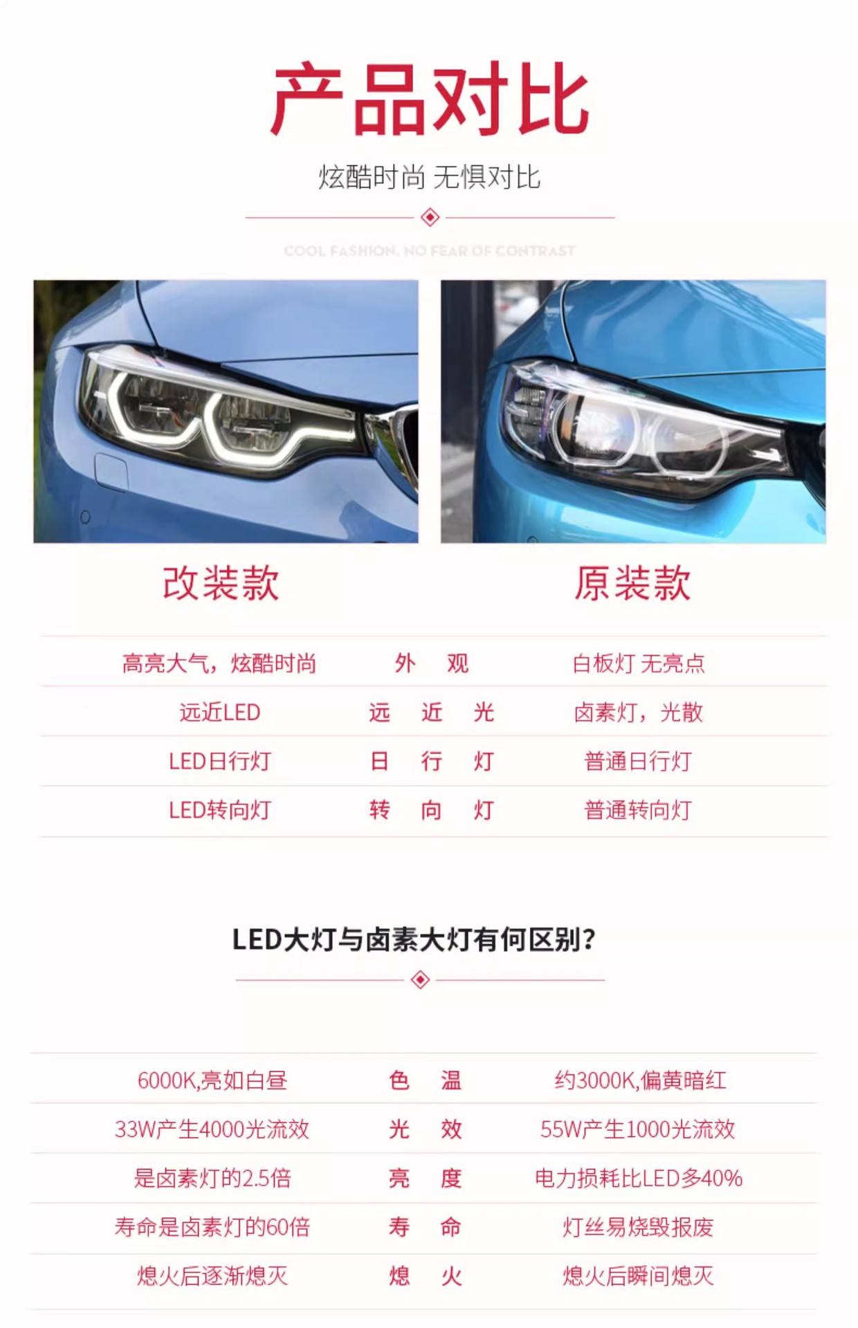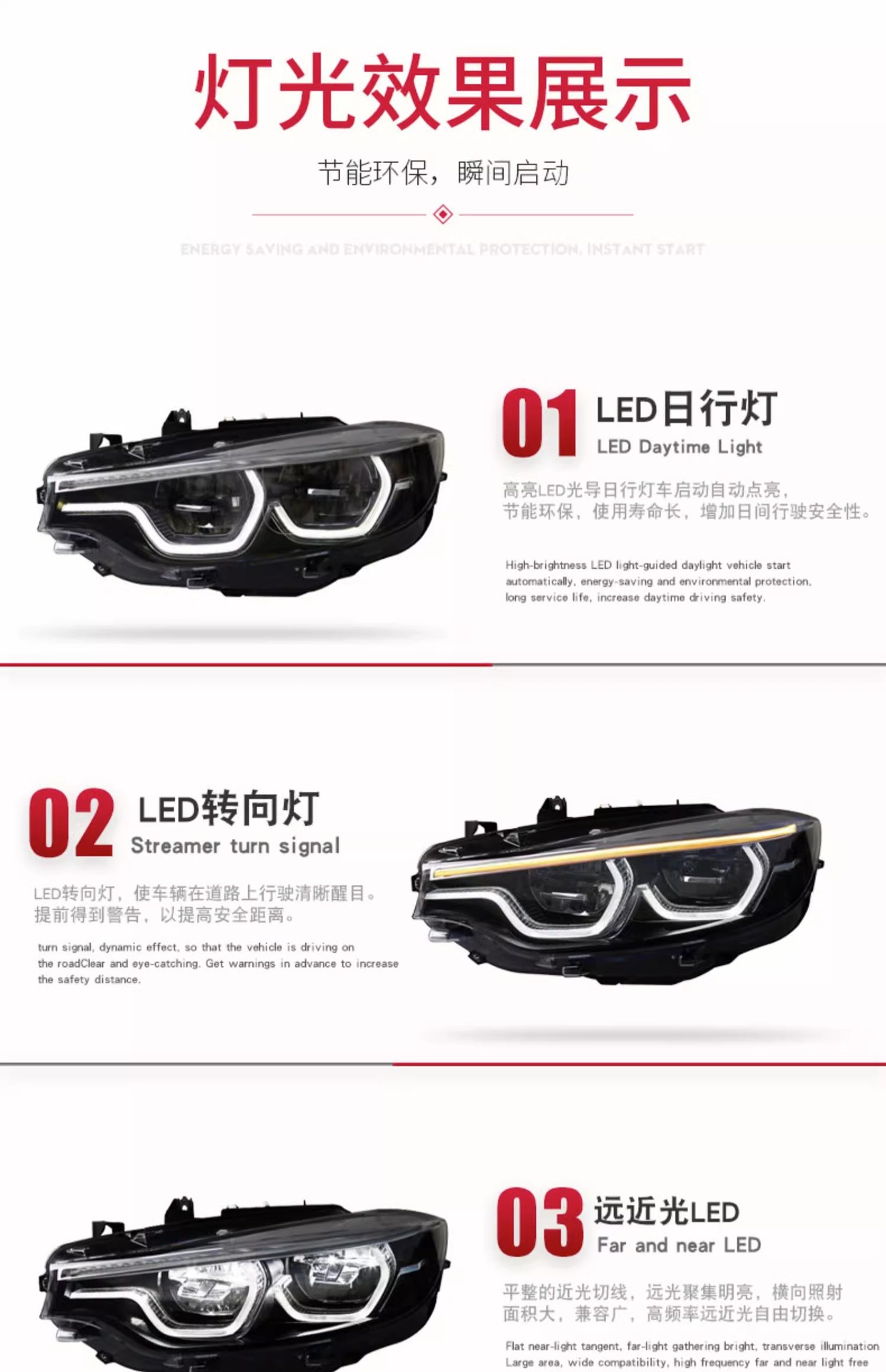 - Superior Illumination: Features bright LED Daytime Running Lights (DRL) and high-visibility turn signals, as seen in the product image, to improve driving safety and modern aesthetics.