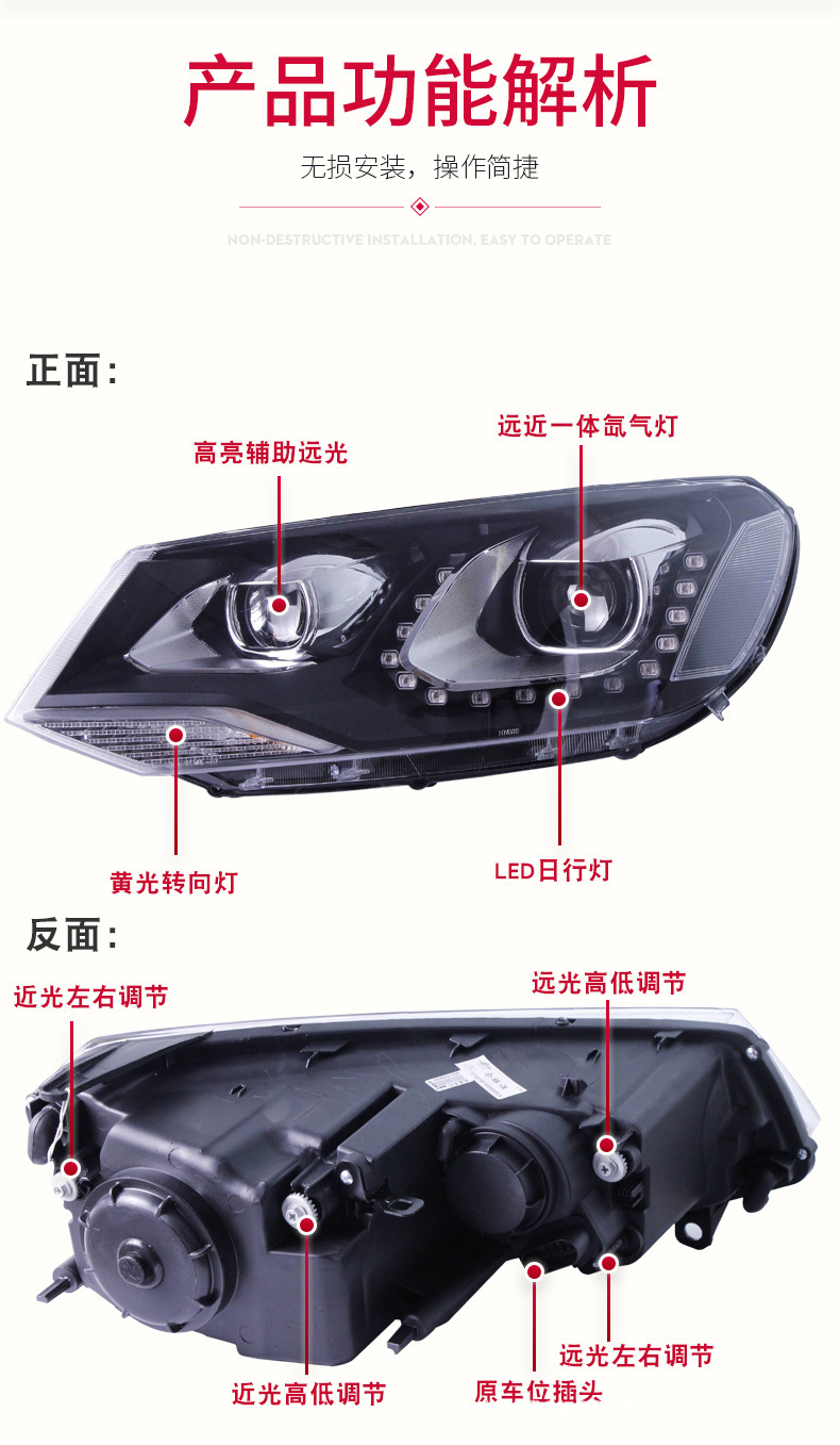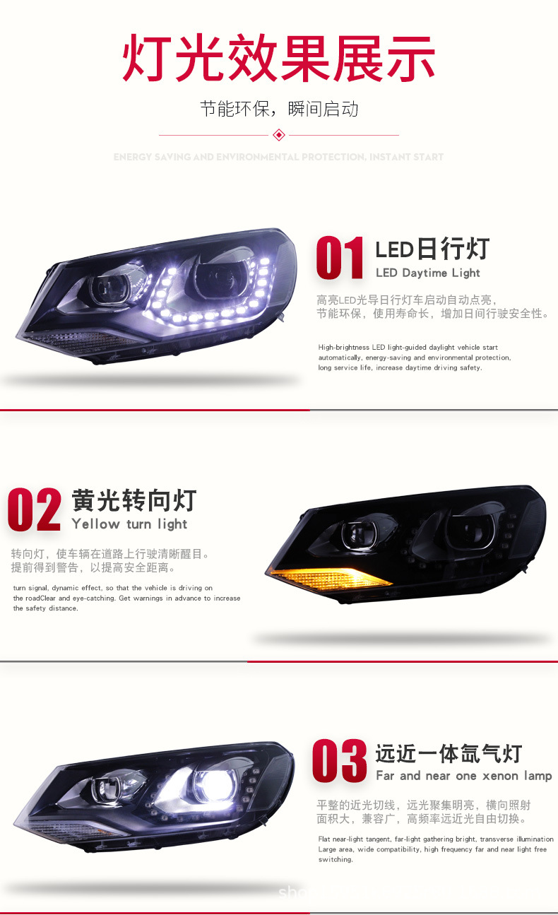 LED DRL Headlight Assembly with Projector Bi-Xenon Lights for Volkswagen Touareg 2011-2015