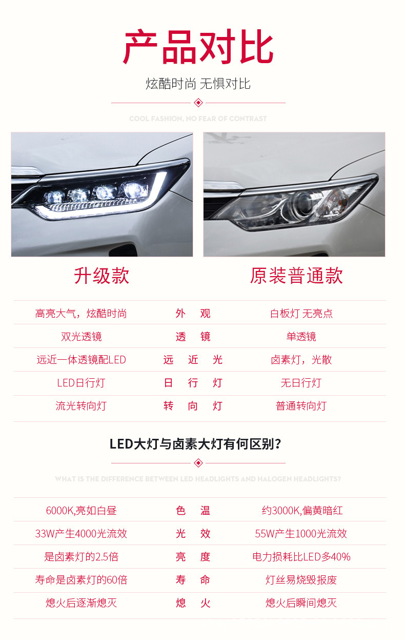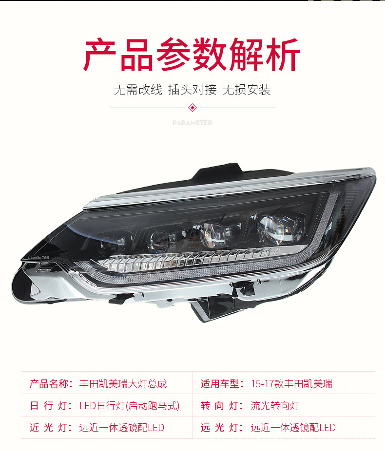 - Complete Headlight Assembly: This package includes a complete headlight assembly set (Left & Right), offering a comprehensive lighting upgrade that enhances both the functionality and visual appeal of your Camry.