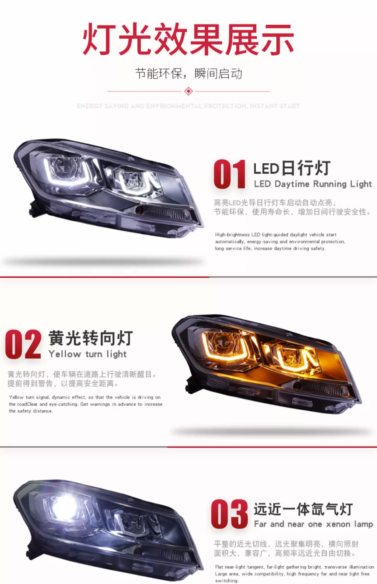 LED DRL Headlight Assembly with Projector Xenon Light for VW Santana 2015-2018
