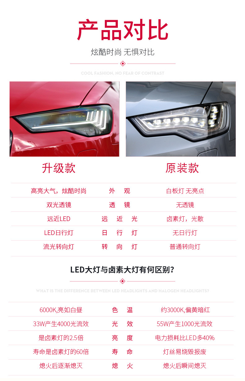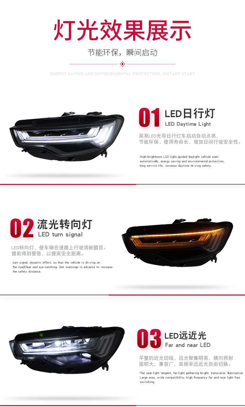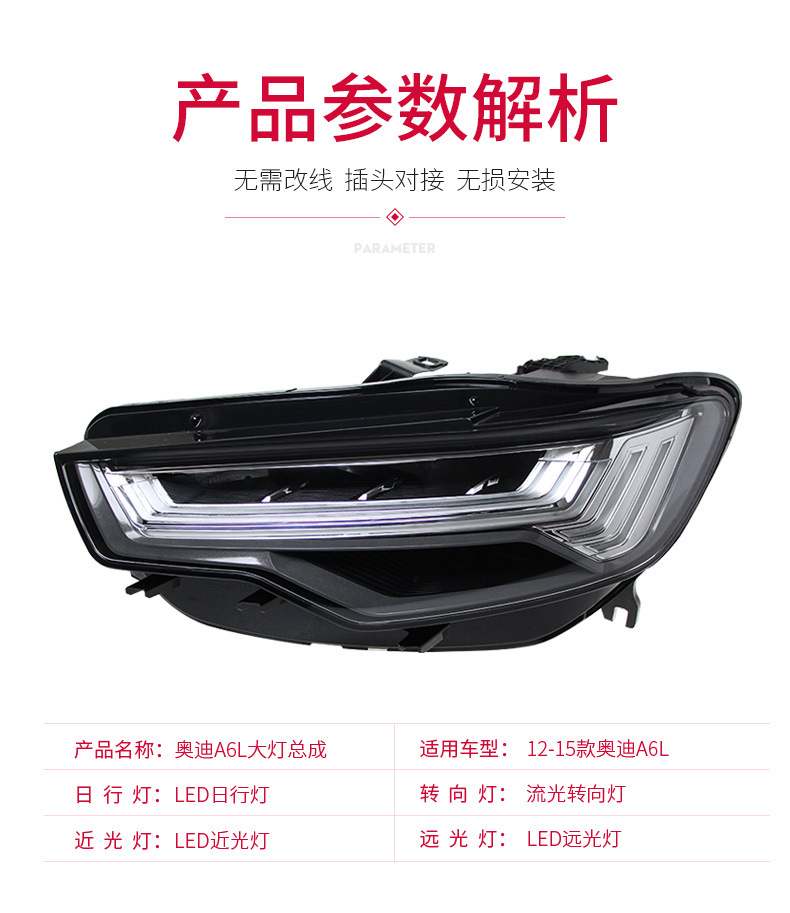 - Complete Package: Includes 1x LED DRL Headlight Assembly for Audi A6L C7 (as pictured). Please verify fitment details before purchasing.