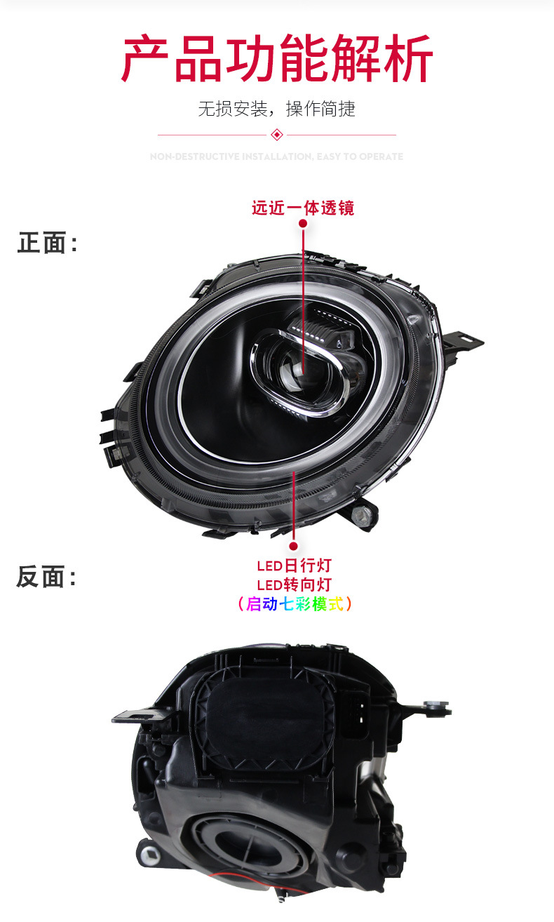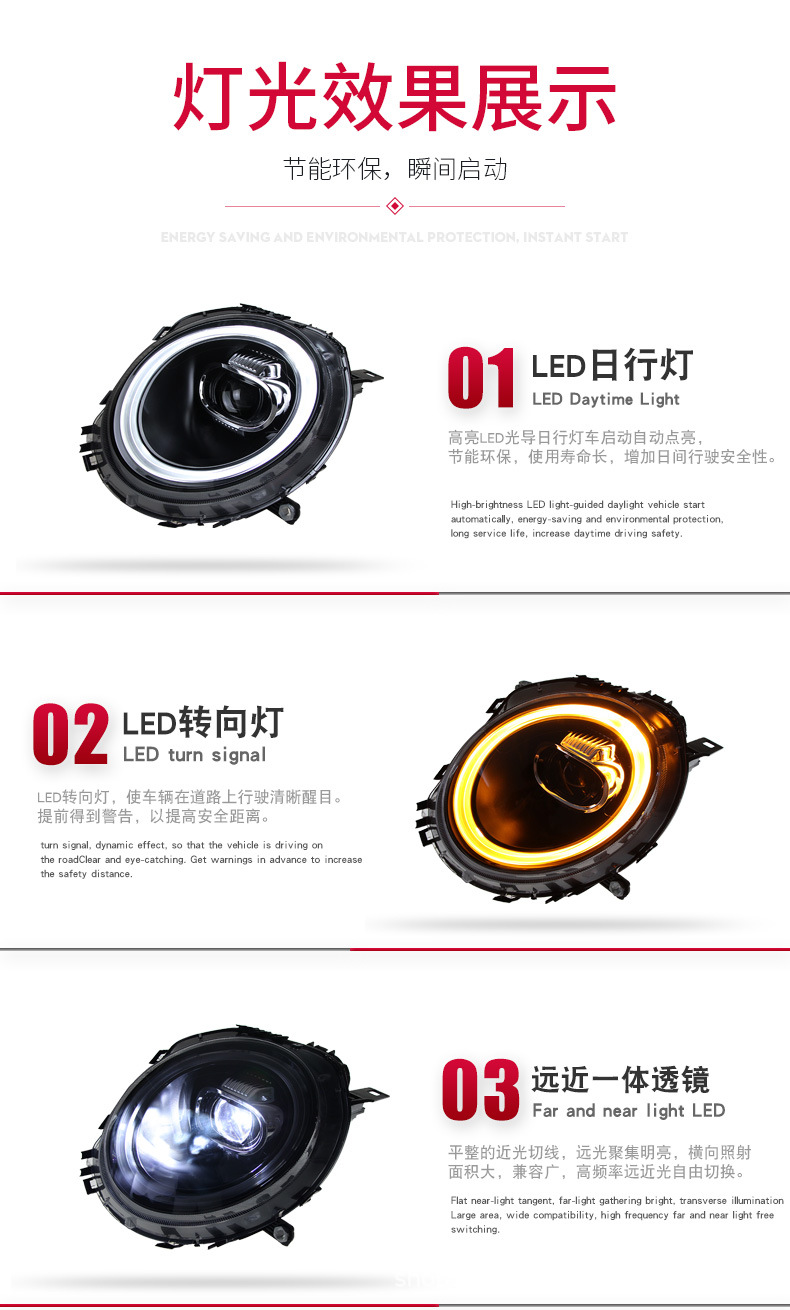 - Enhanced Styling: Modern LED DRL (Daytime Running Light) design with integrated turn signal function elevates your Mini’s appearance, providing a sleek, sportier, and more distinctive look compared to factory headlights.