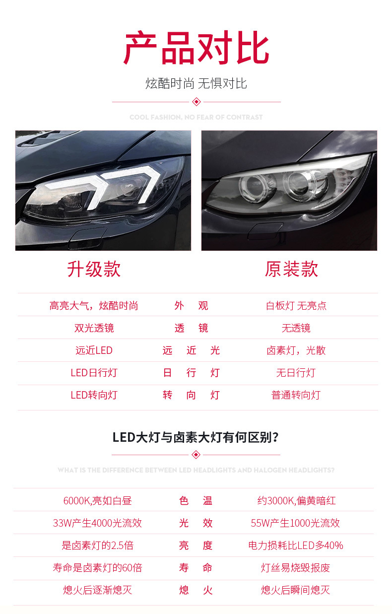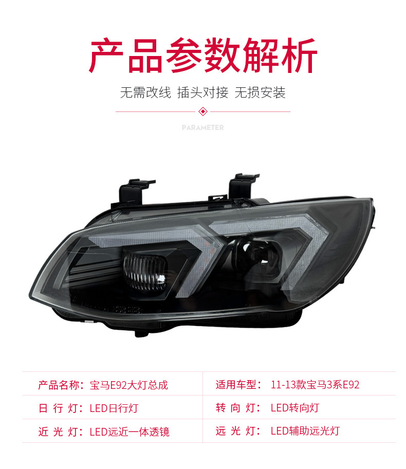 LED DRL Headlight Assembly with Turn Signal Projector Lens for BMW 3 Series E92 E93 M3 2011-2013