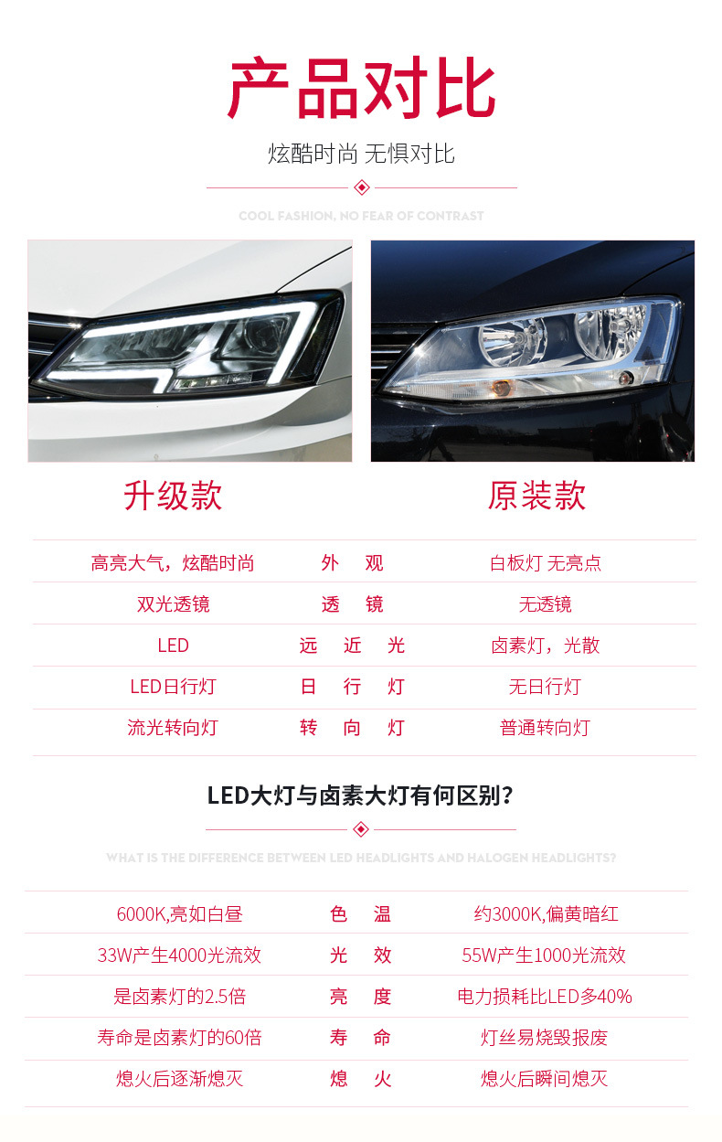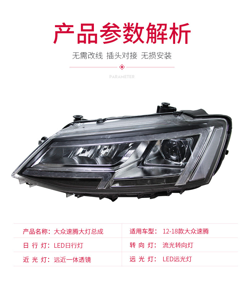 - Direct Fitment: A perfect replacement for Volkswagen New Sagitar models from 2012 to 2018, as shown with LED DRL and projector lens.