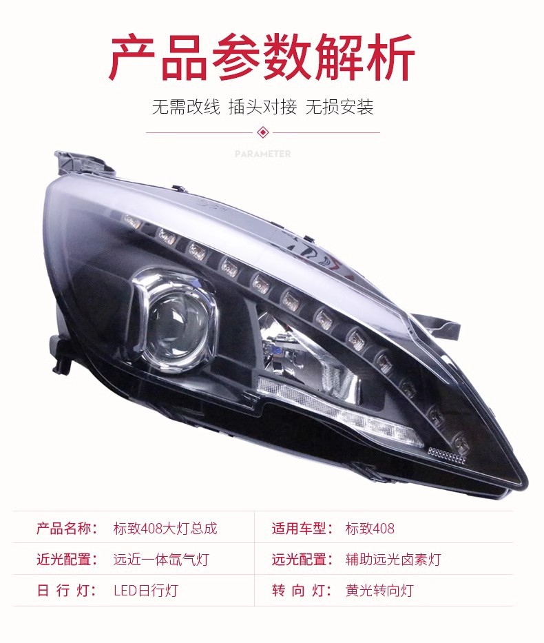 LED DRL Headlight Assembly with Xenon Lamp for Peugeot 408 308S