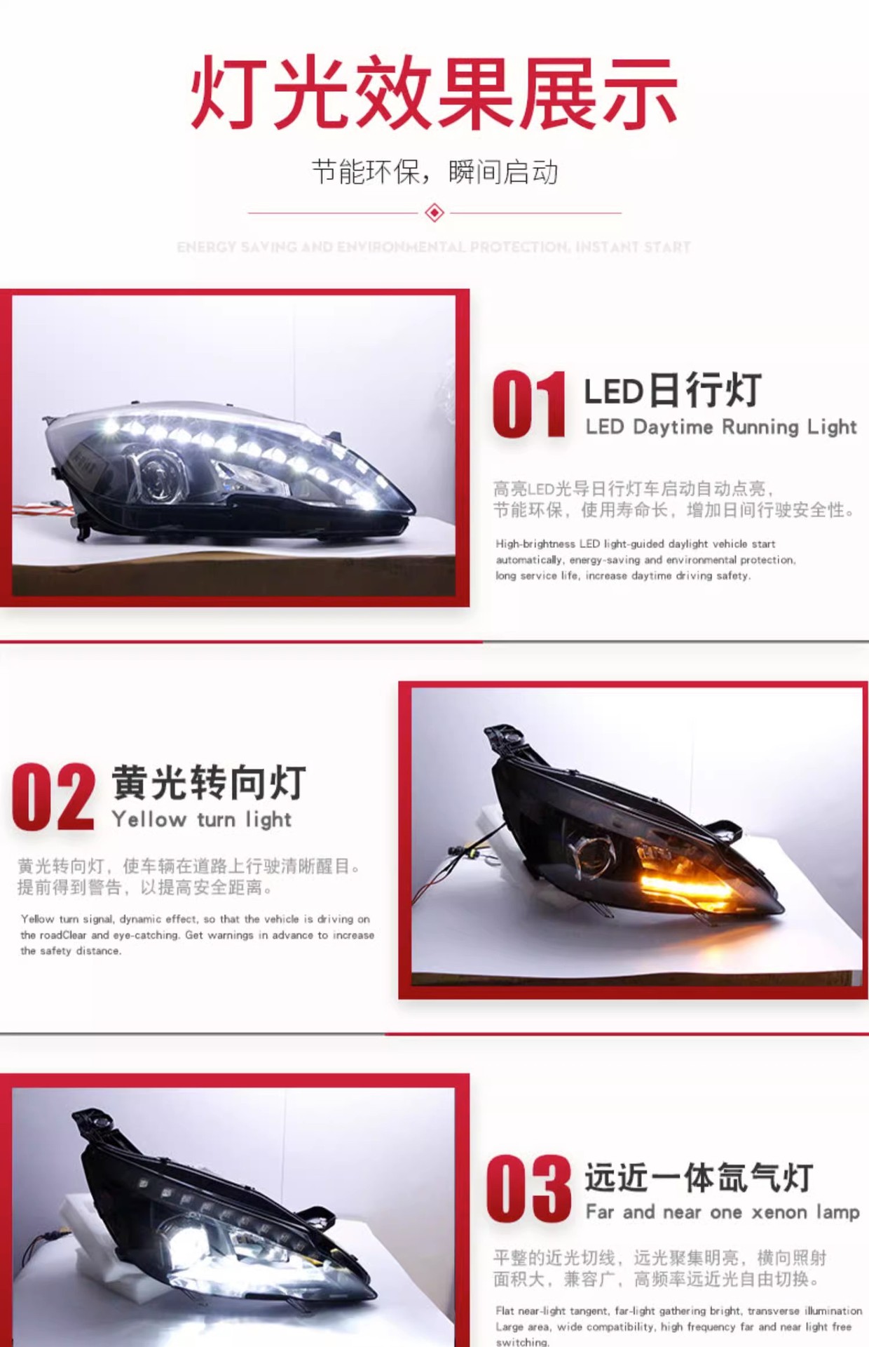 - Superior Illumination: Features a high-performance Xenon lamp as seen in the image for enhanced brightness and visibility, alongside modern LED Daytime Running Lights (DRLs).