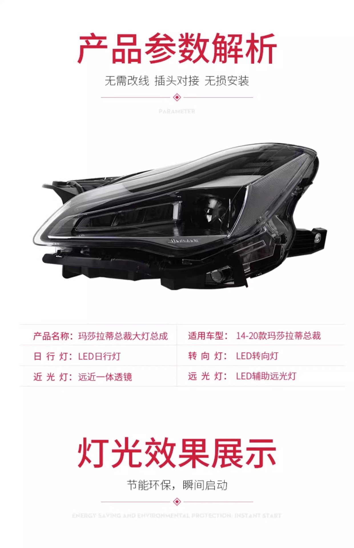 - Advanced Lighting Performance: Featuring powerful LED light sources operating at 24V with 55A current, these headlights deliver superior illumination and safety, improving visibility and making your Maserati总裁 stand out on the road.