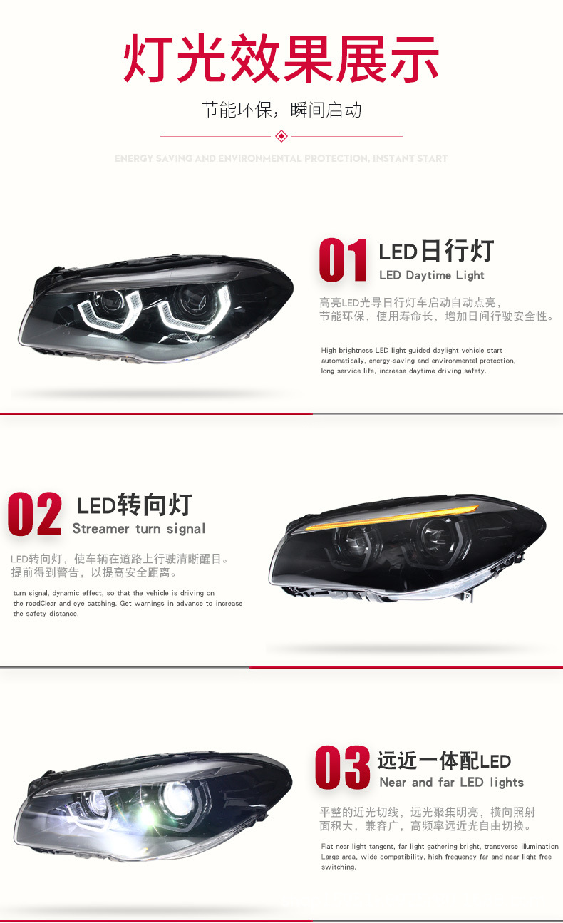 LED DRL Projector Headlight Assembly for BMW 5 Series F10 F18 (2011-2017)