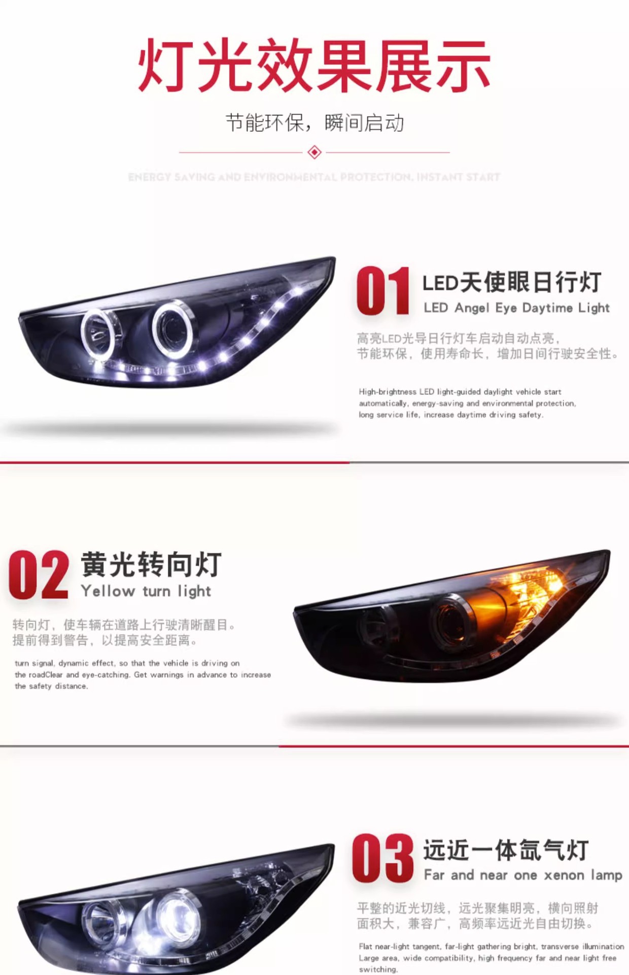 LED DRL Projector Headlight Assembly for 2009-2012 Hyundai ix35 with Angel Eye