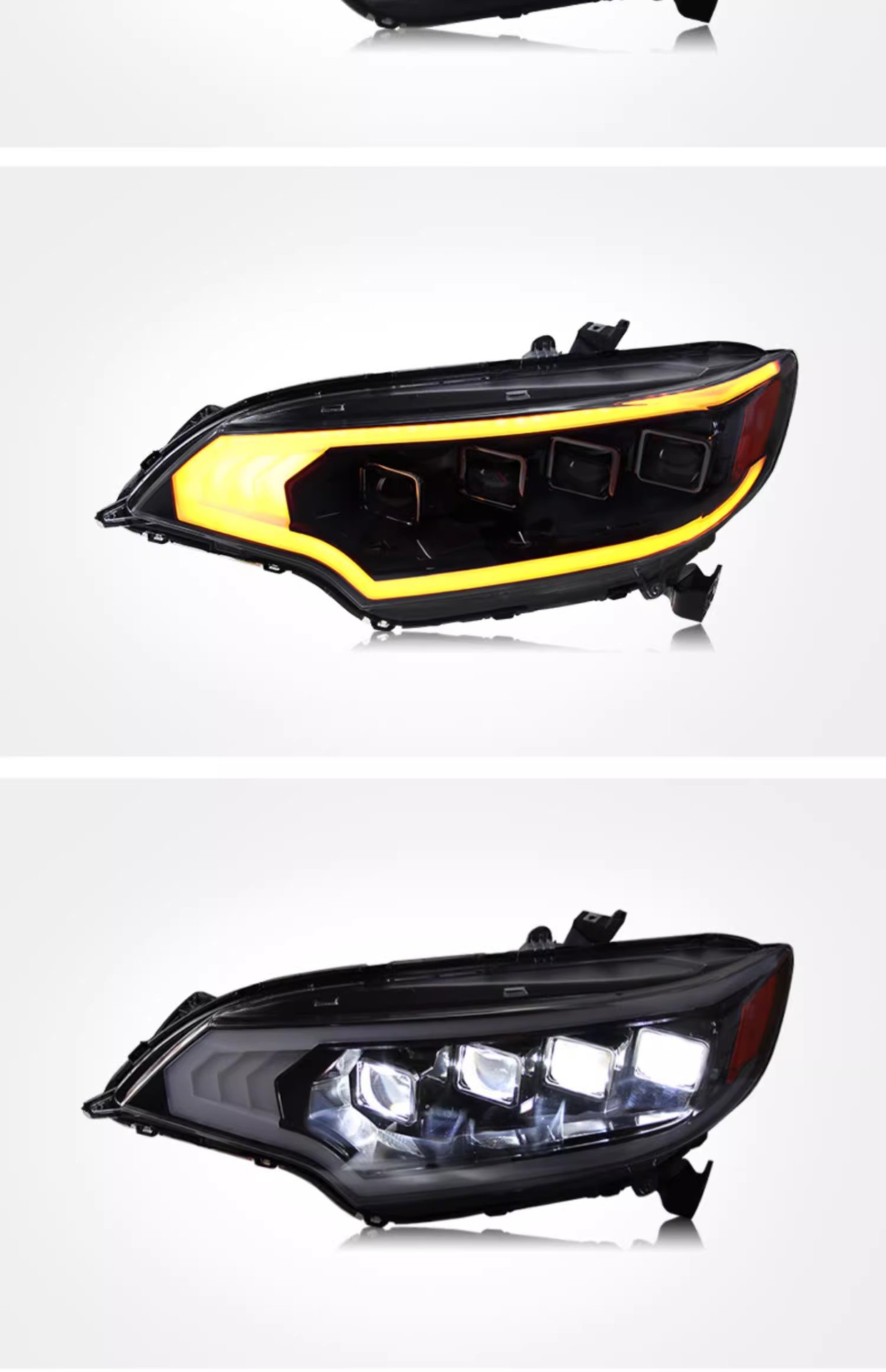 - Superior Illumination: Features integrated LED DRL (Daytime Running Lights), turn signals, and projector lenses for enhanced visibility and modern aesthetics, as shown in the image.
