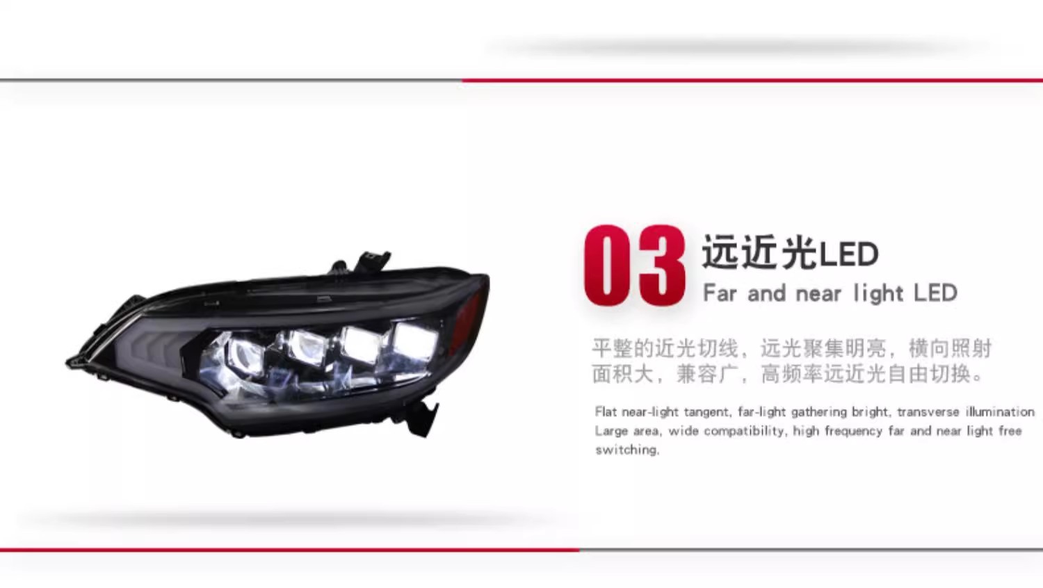 - Comprehensive Lighting: Includes LED low beam and high beam functions, providing bright and clear light output for improved driving safety, as depicted.