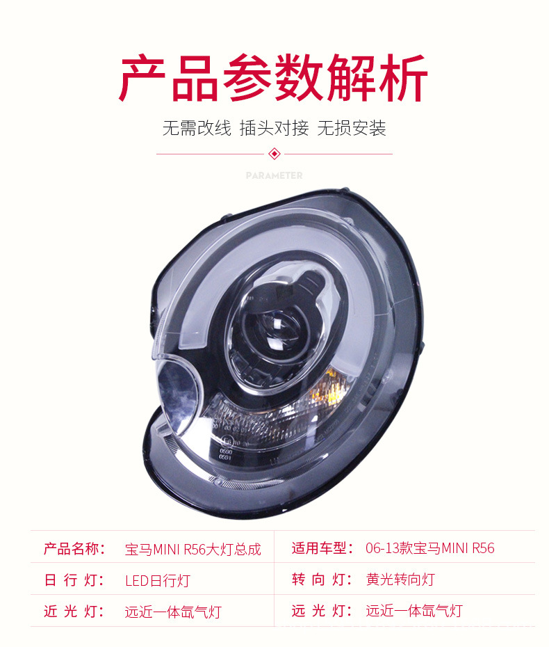 LED DRL Projector Xenon Headlight Assembly for MINI Cooper R55 R56 (2007-2013)