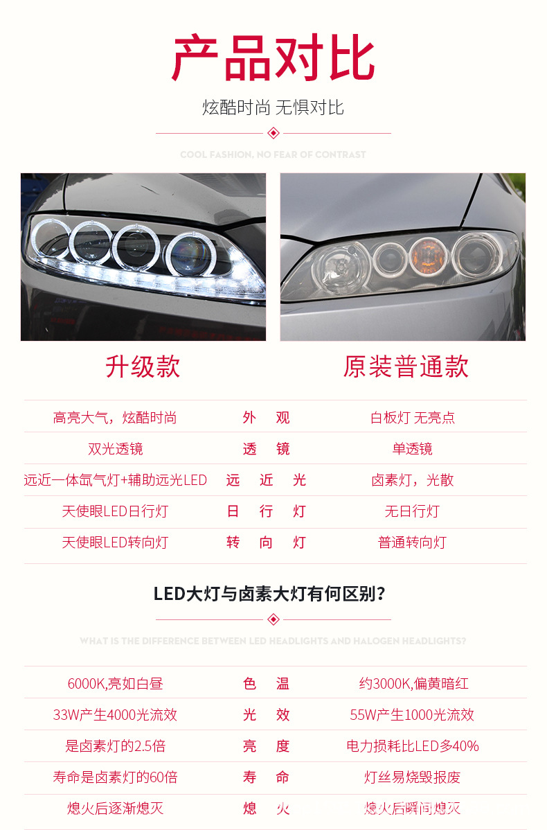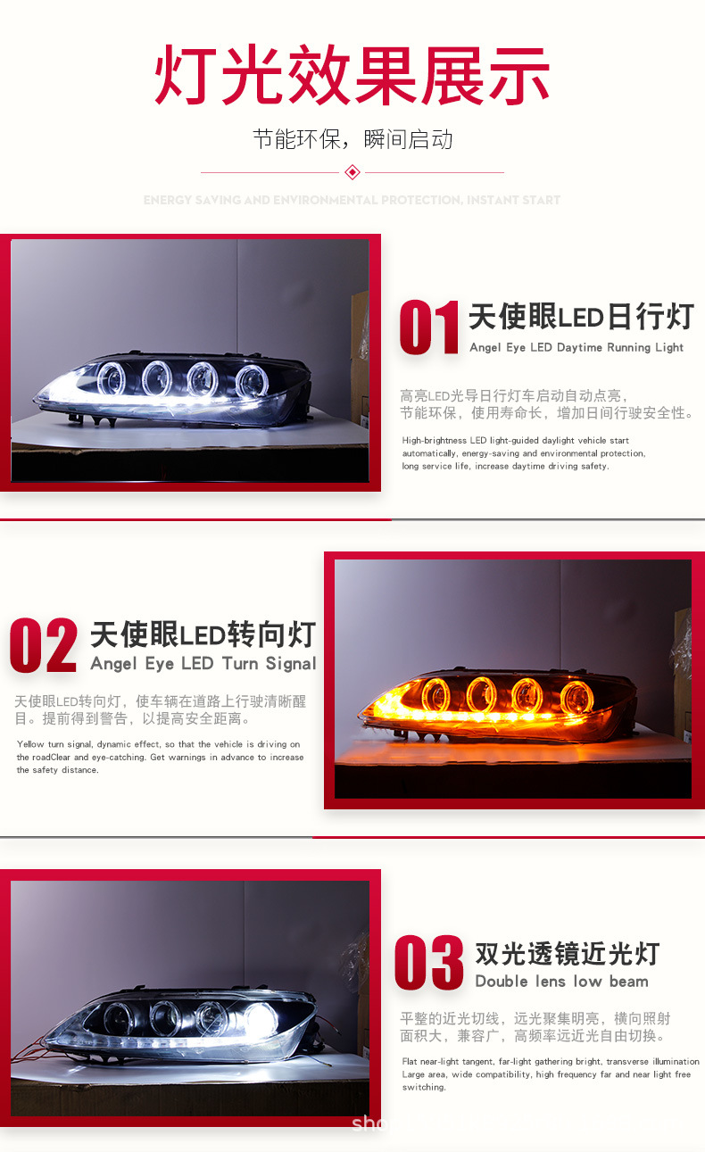- Enhanced Aesthetics & Visibility: Features integrated LED Daytime Running Lights (DRL) and projector xenon technology, providing a modern angelic eye look while significantly improving nighttime visibility and road safety.