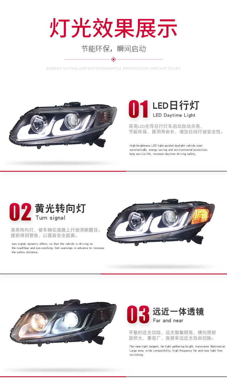 - Enhanced Aesthetic Appeal: Upgrade your vehicle’s look with modern LED daytime running lights and projector xenon technology, adding a sleek and sophisticated touch to your Honda Civic.