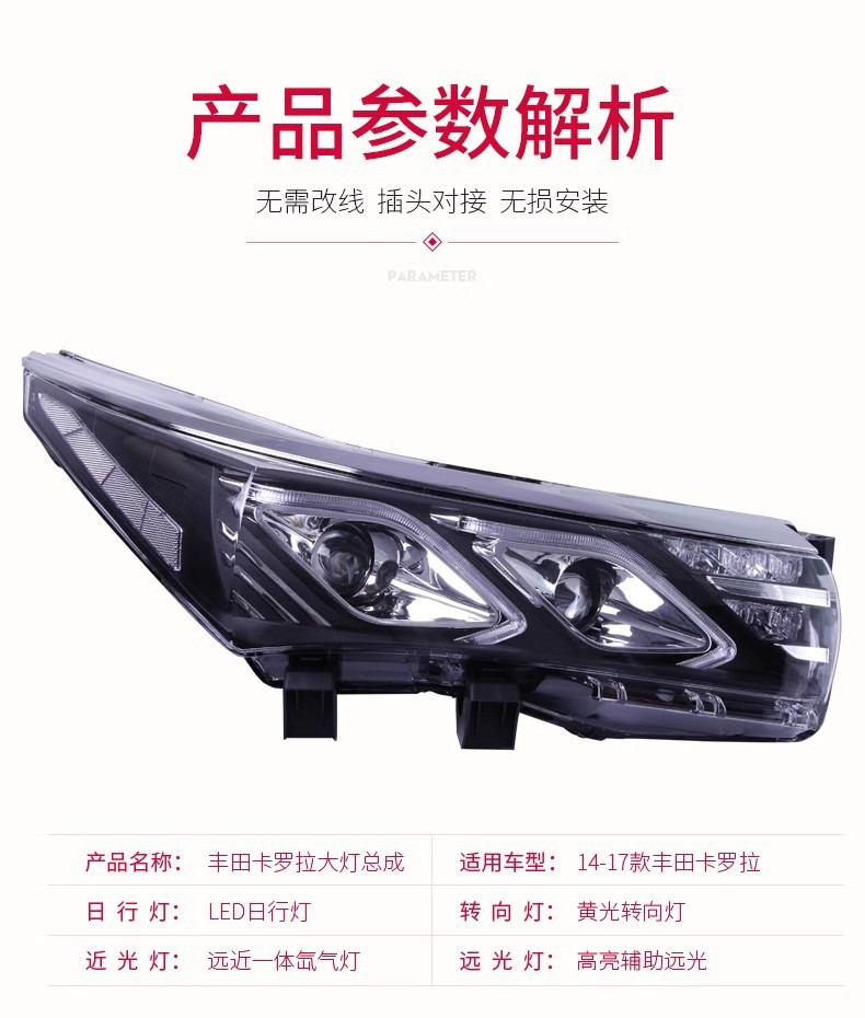 - Precise Fitment: Specifically designed for Toyota Corolla 2014, 2015, and 2016 models, ensuring a perfect, direct-fit replacement for your original headlight assembly without modifications.