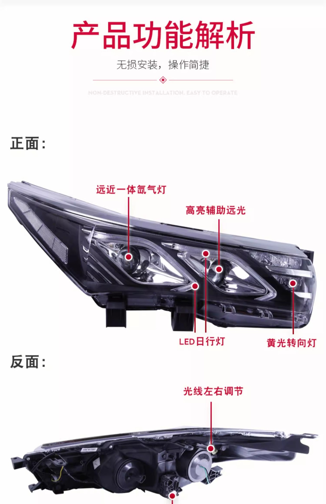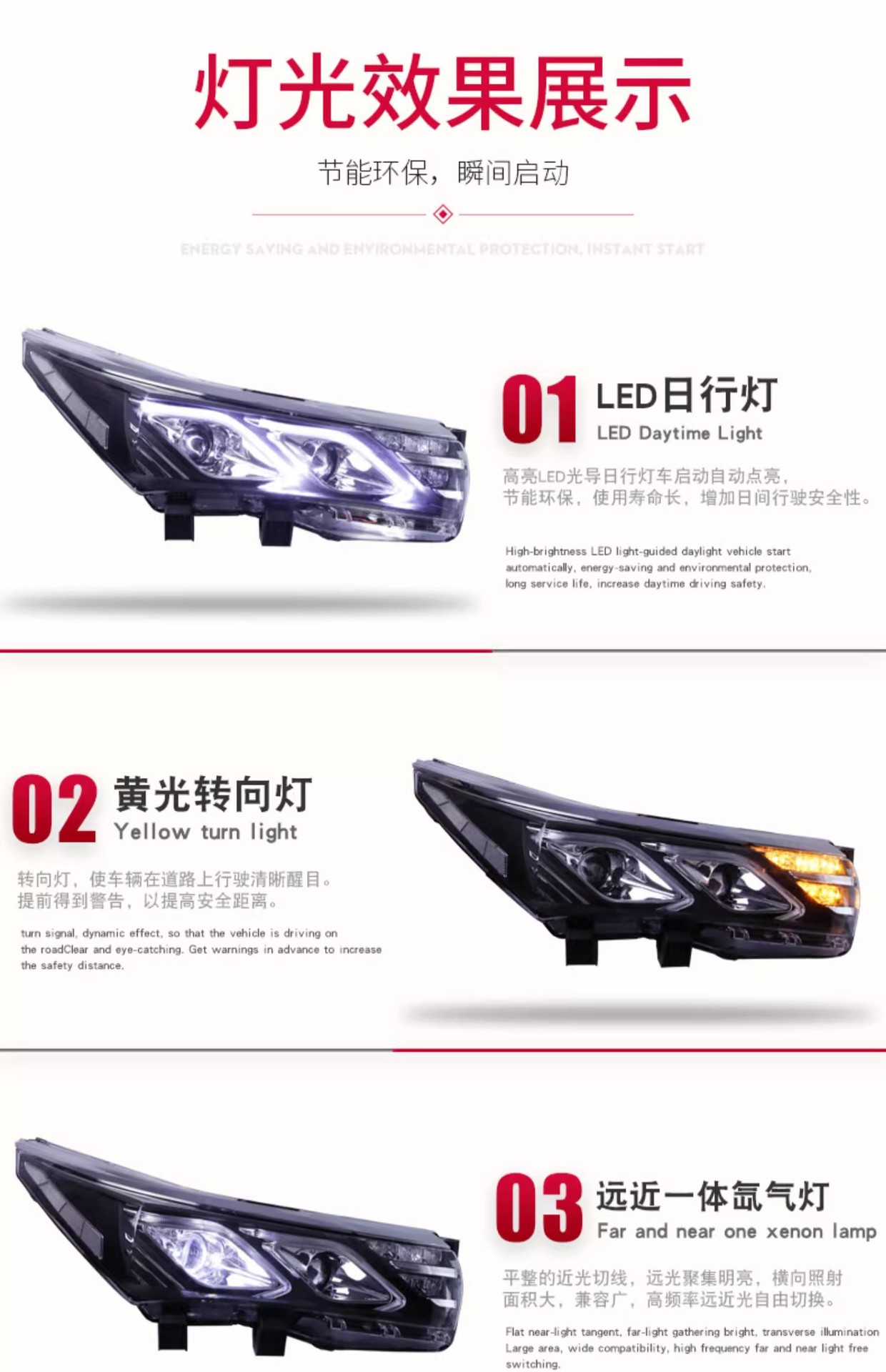 LED DRL Projector Xenon Headlight Assembly for Toyota Corolla 2014-2016