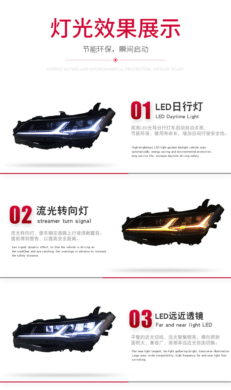 - Enhanced Style & Visibility: Features integrated LED Daytime Running Lights (DRL) and dynamic sequential turn signals, upgrading your vehicle’s aesthetic while improving road visibility.