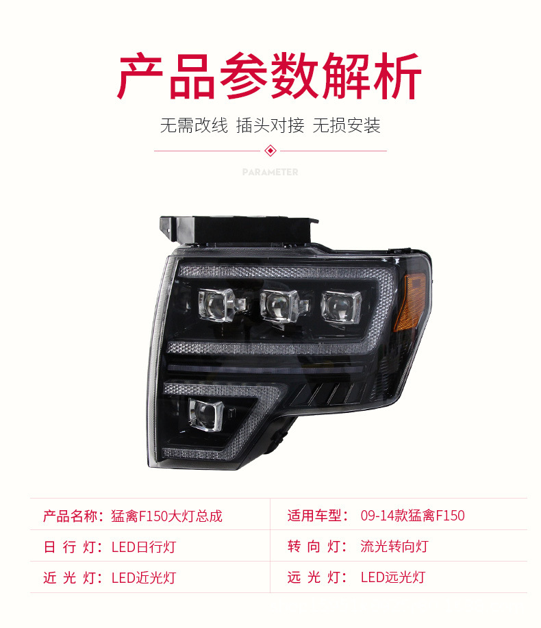 LED DRL Sequential Dynamic Turn Signal Projector Headlight Assembly for Ford F-150 Raptor 2008-2014