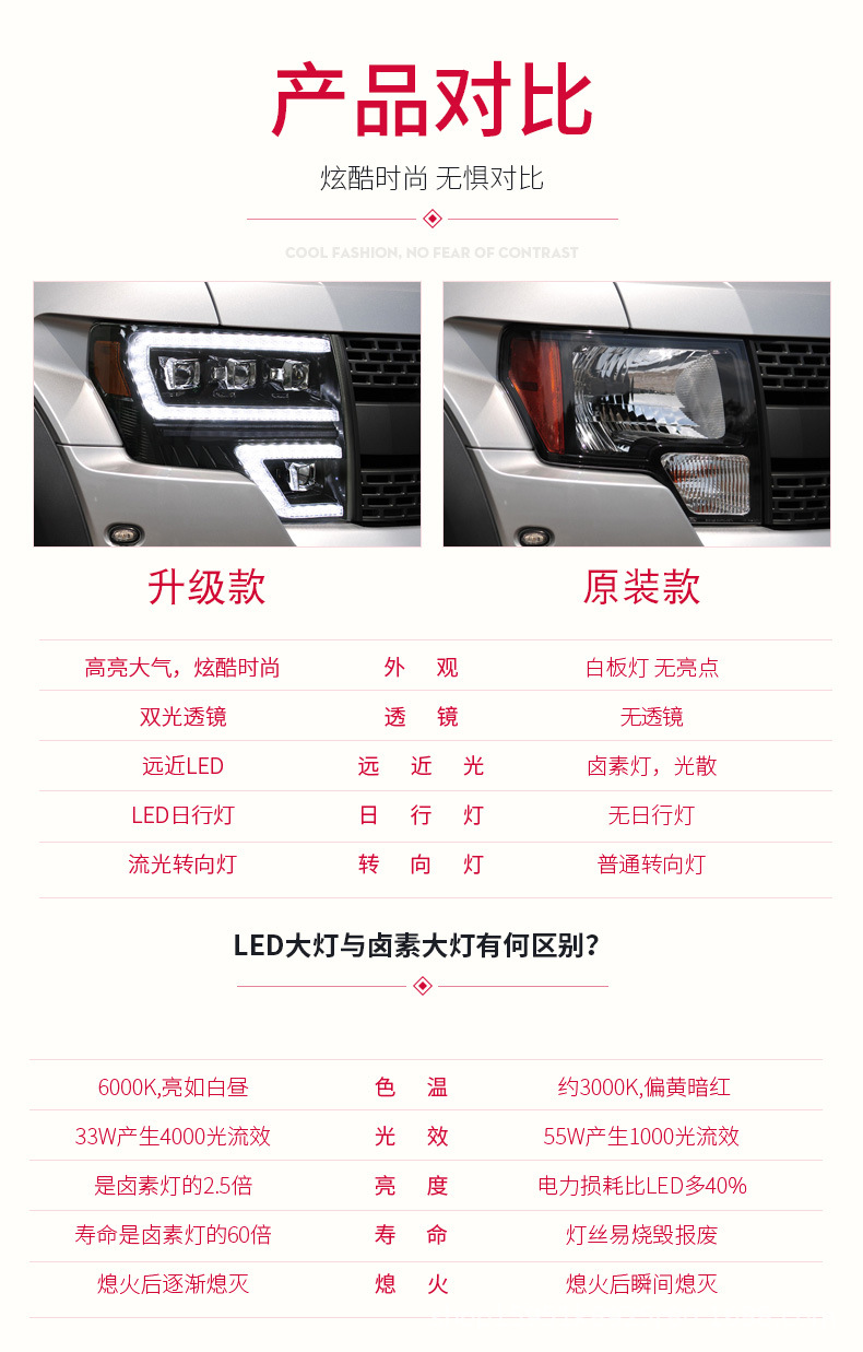 - Modern Styling: Features striking LED daytime running lights and sequential dynamic turn signals, providing a contemporary aesthetic upgrade that enhances your vehicle’s appearance.