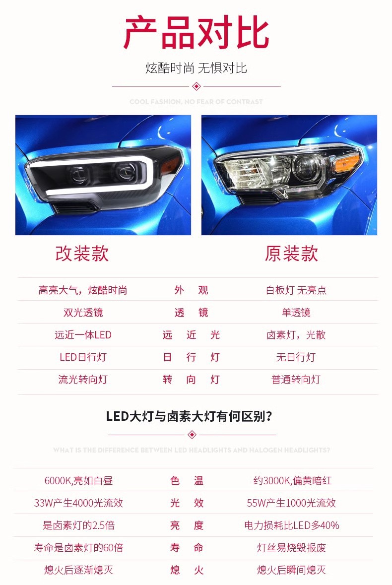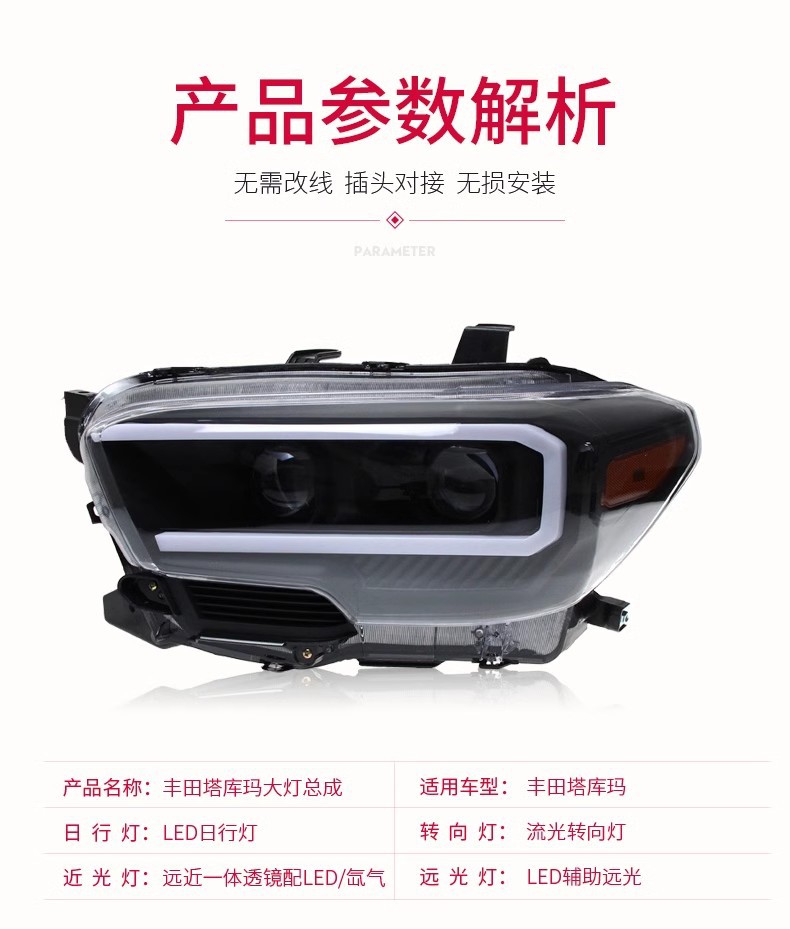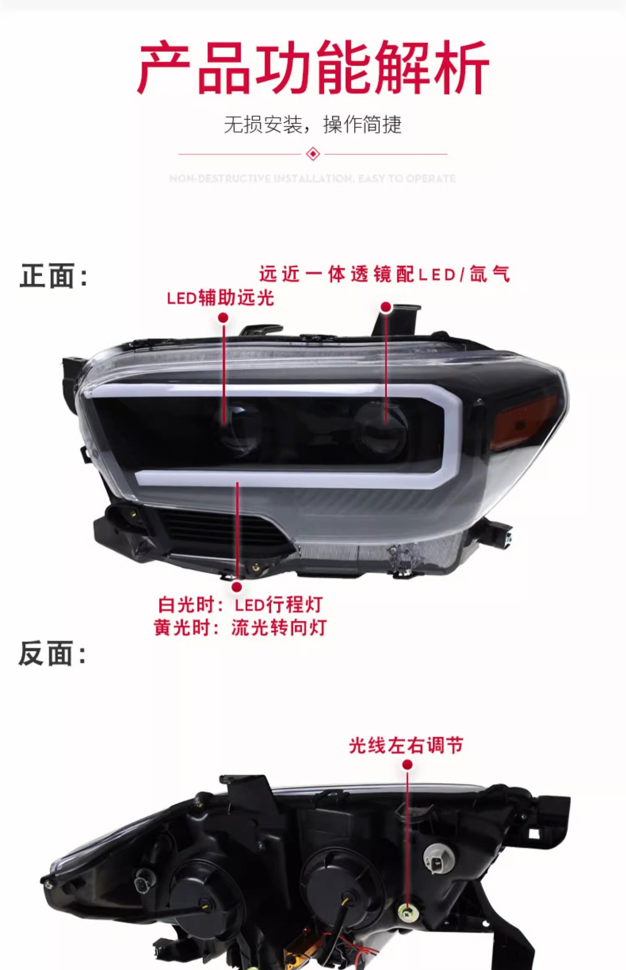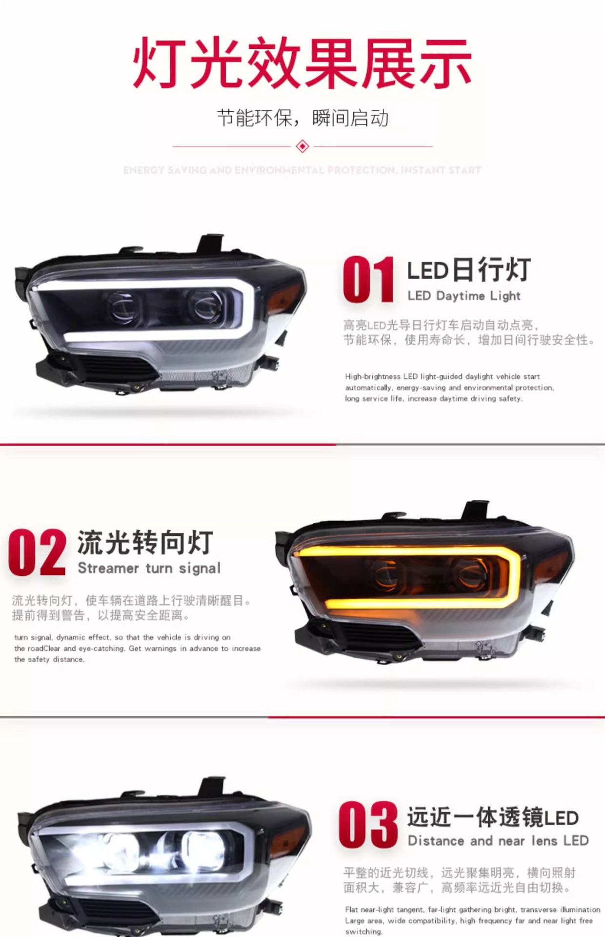 LED DRL Sequential Dynamic Turn Signal Headlight Assembly for Toyota Tacoma (2016-2023)