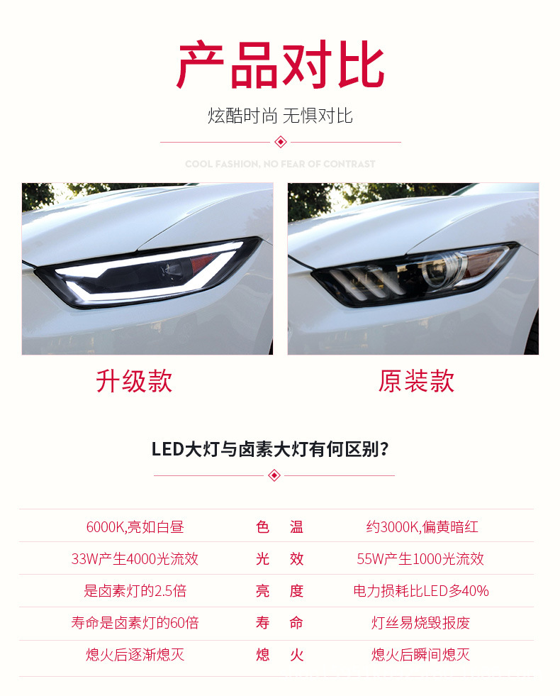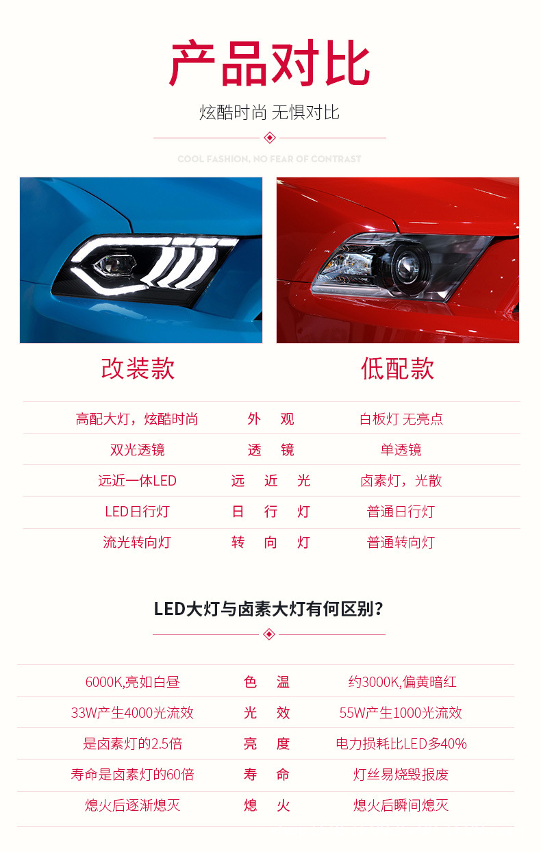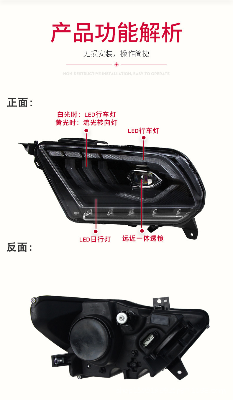 - Stylish Upgrade: Transform the look of your Mustang with a sleek, contemporary headlight design that adds a distinctive and aggressive edge to your vehicle’s front end.