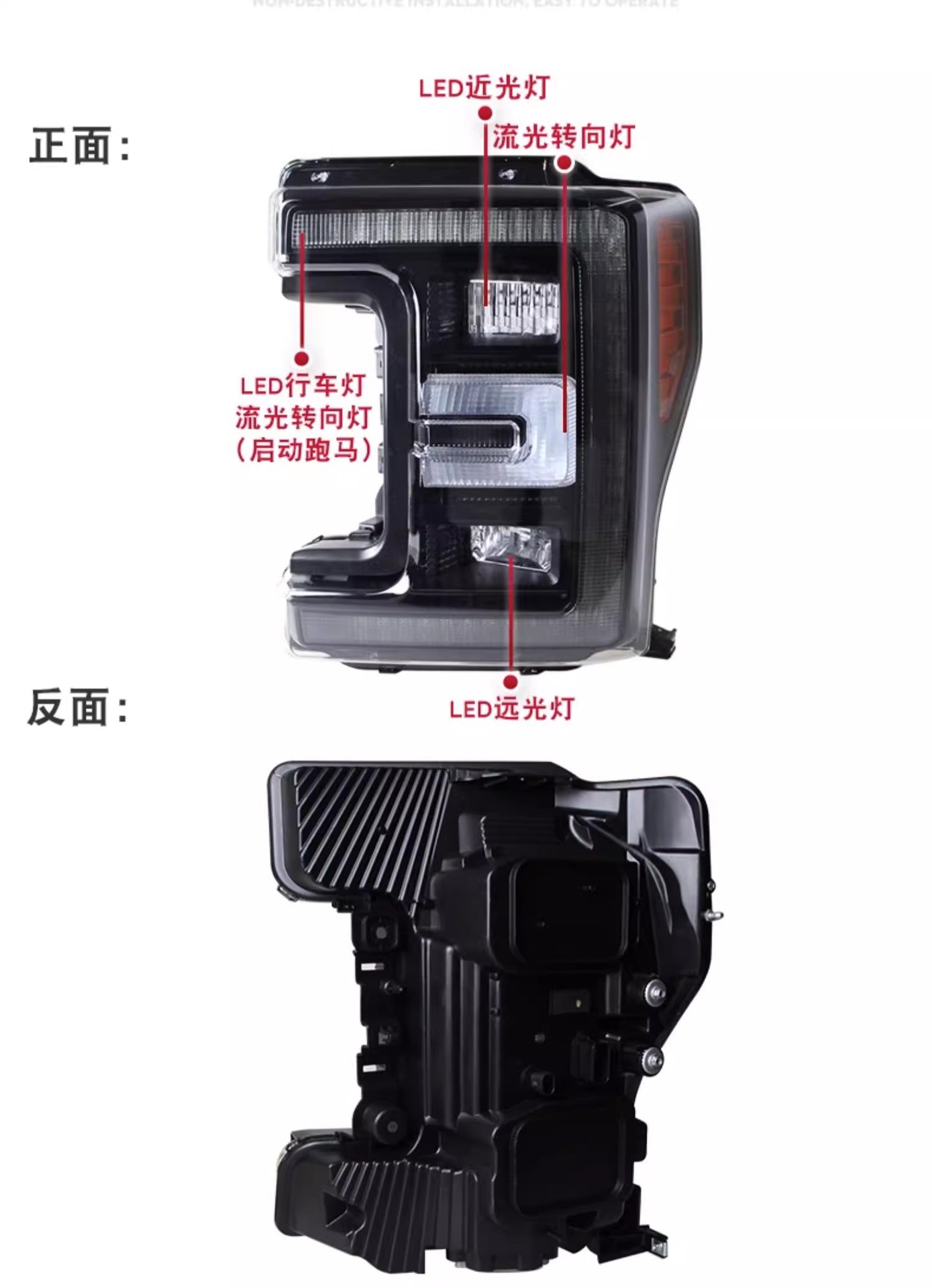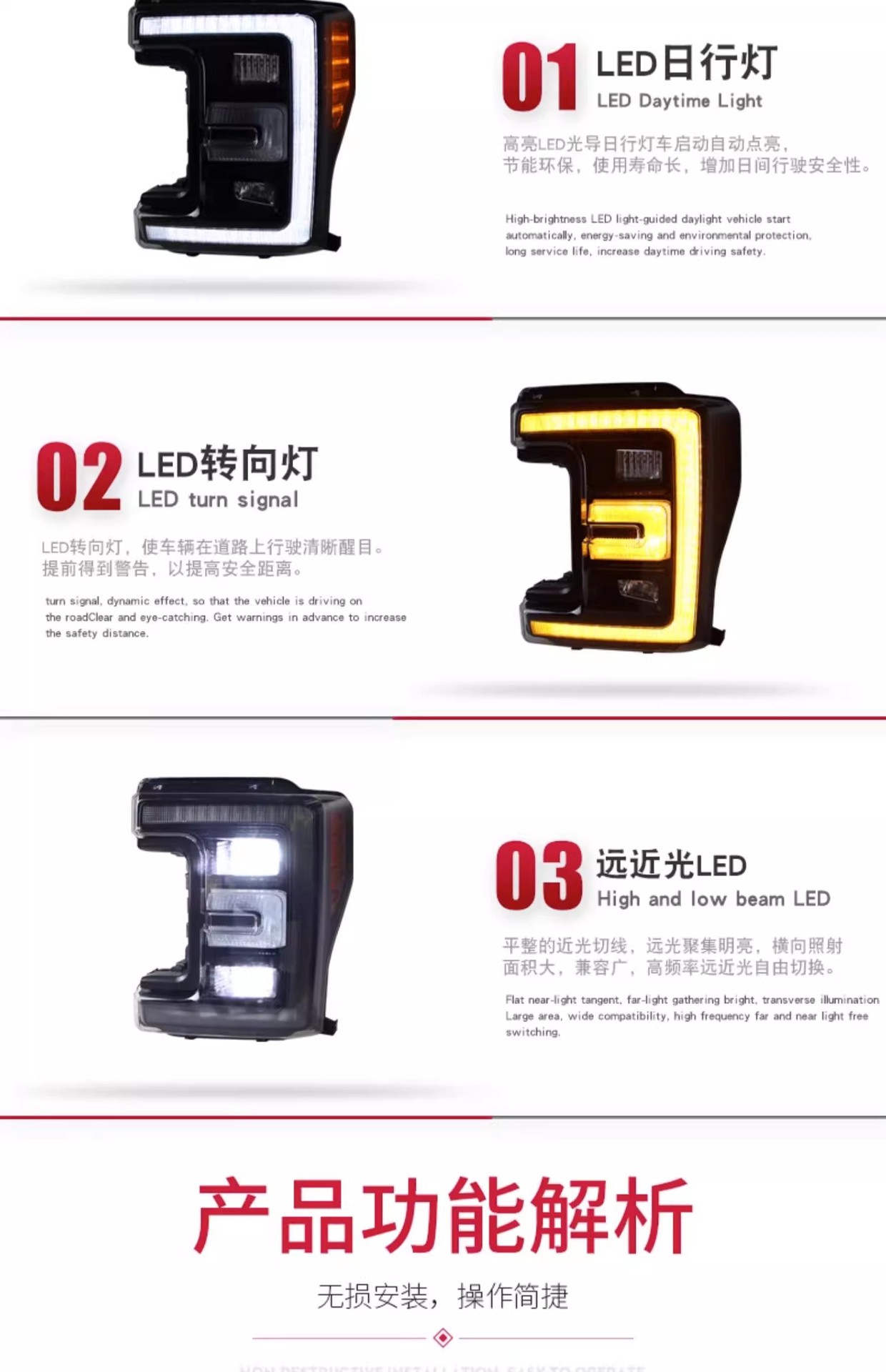 - Complete Headlight Assembly: This package includes one full LED headlight assembly. Upgrade your Ford F250 with a stunning visual enhancement and improved safety features, offering both style and functionality.
