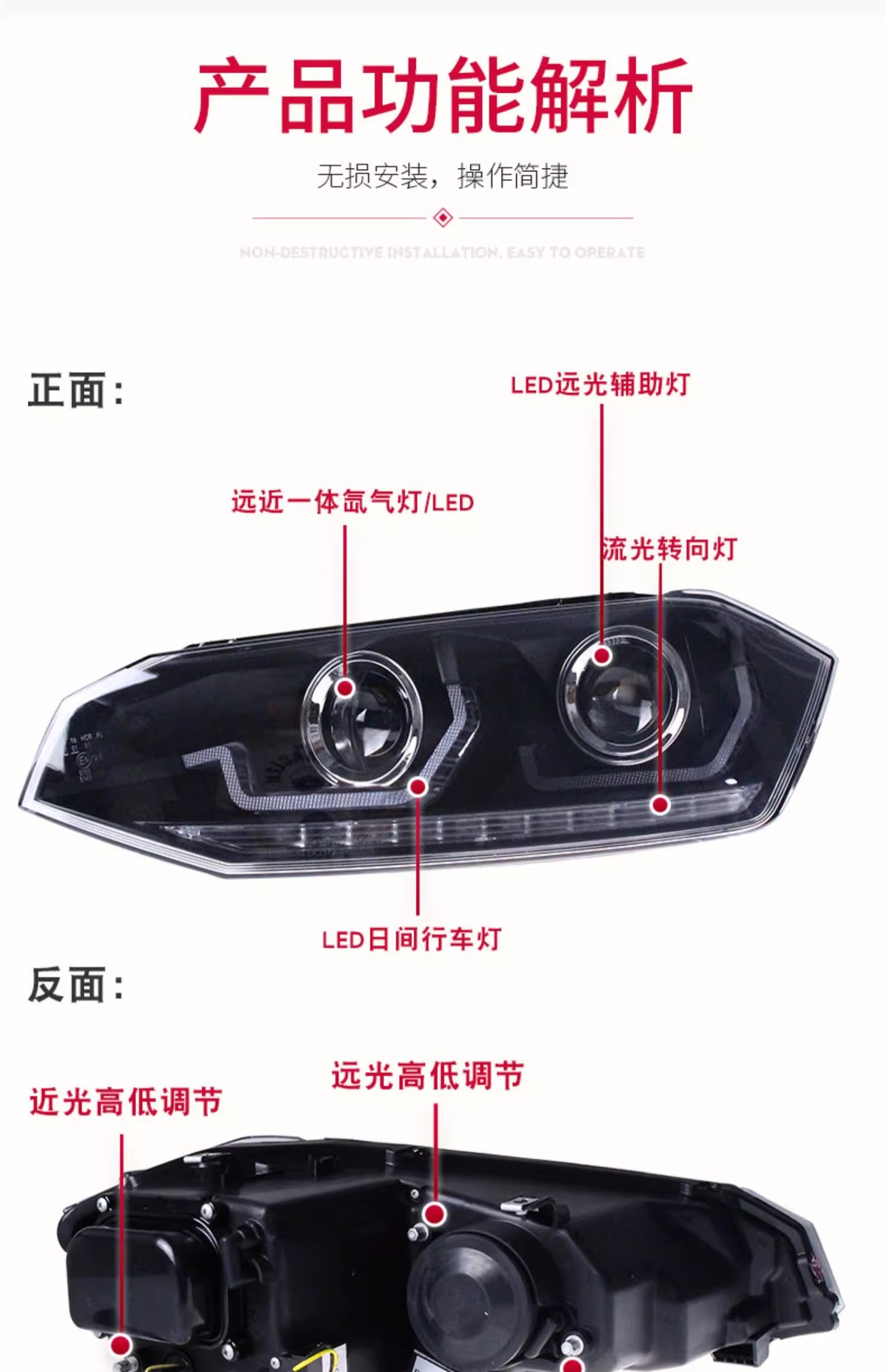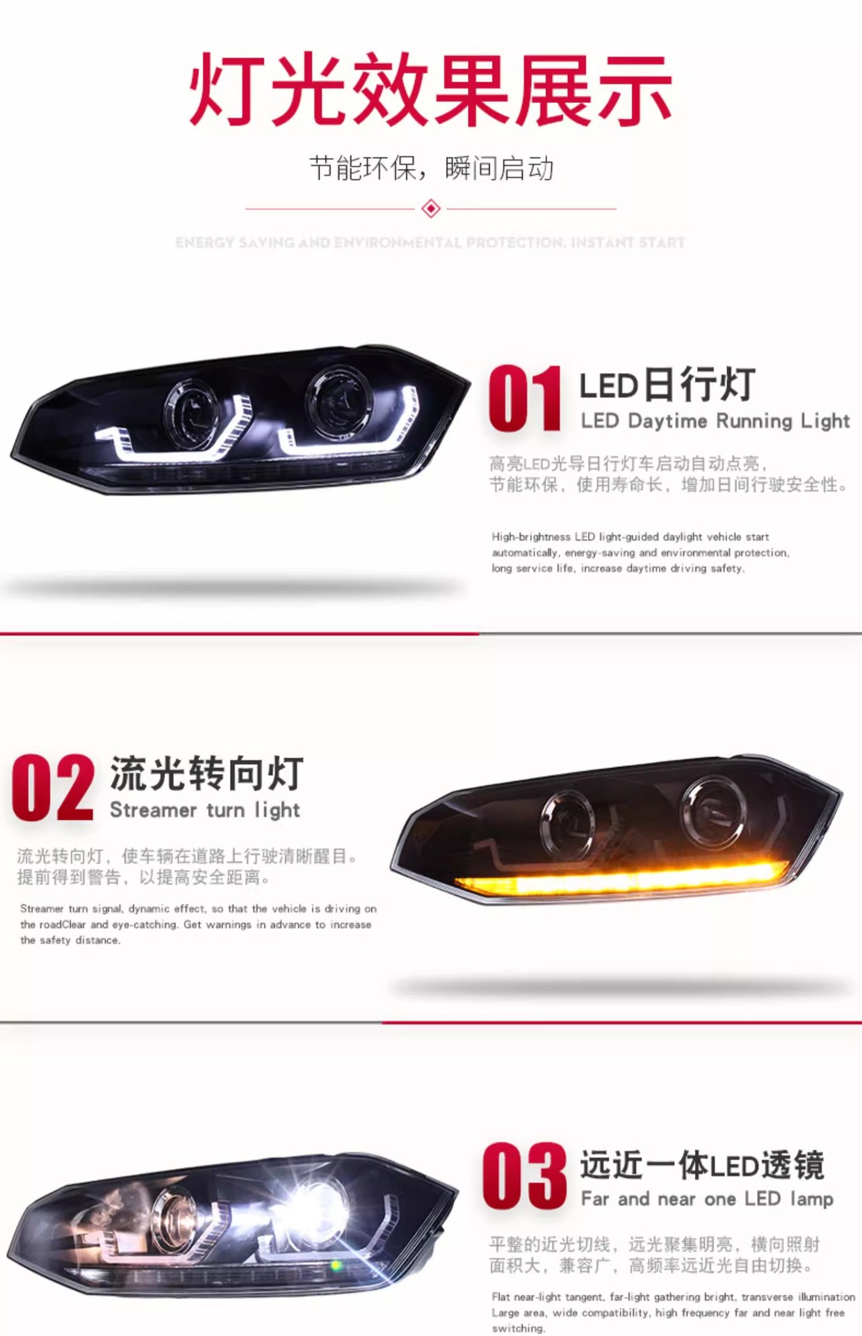 LED DRL Sequential Turn Signal Headlight Assembly for Volkswagen Polo Plus 2019