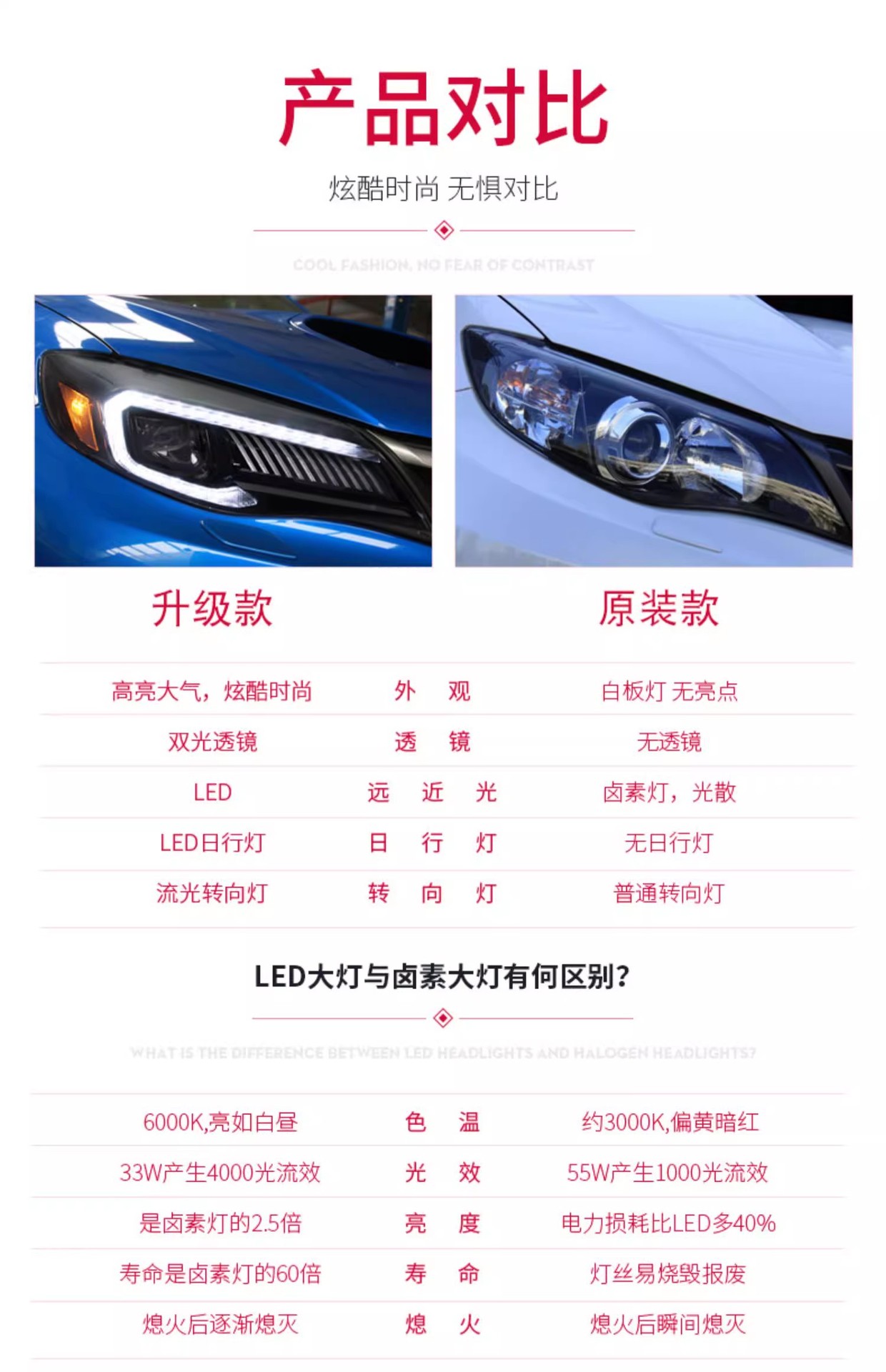- Modern Aesthetic Upgrade: Upgrade your vehicle’s front-end appearance with a sleek, modern design that incorporates advanced LED technology, giving your Subaru a contemporary and aggressive look.