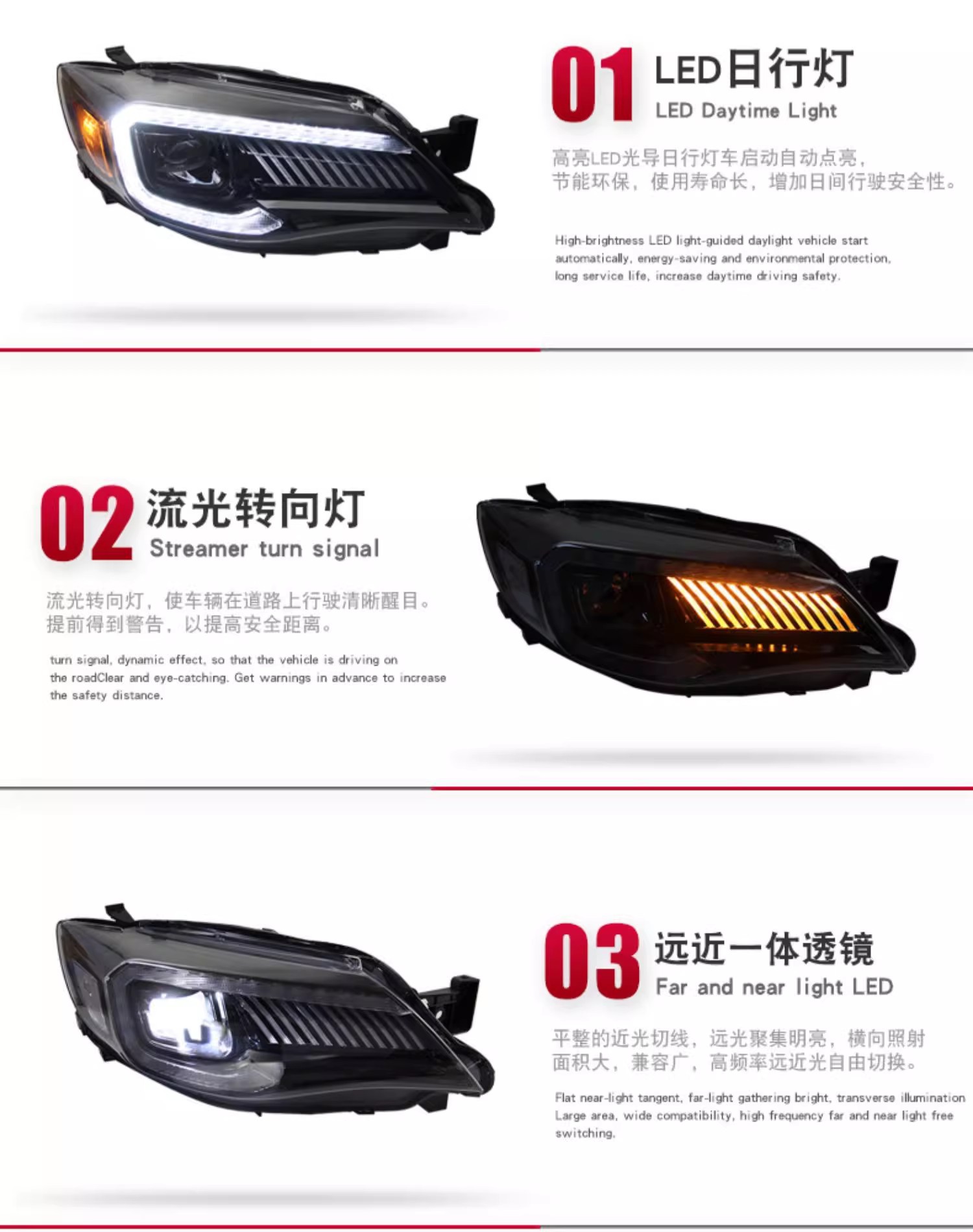 LED DRL Sequential Turn Signal Headlight Assembly for Subaru Impreza WRX (2008-2014)