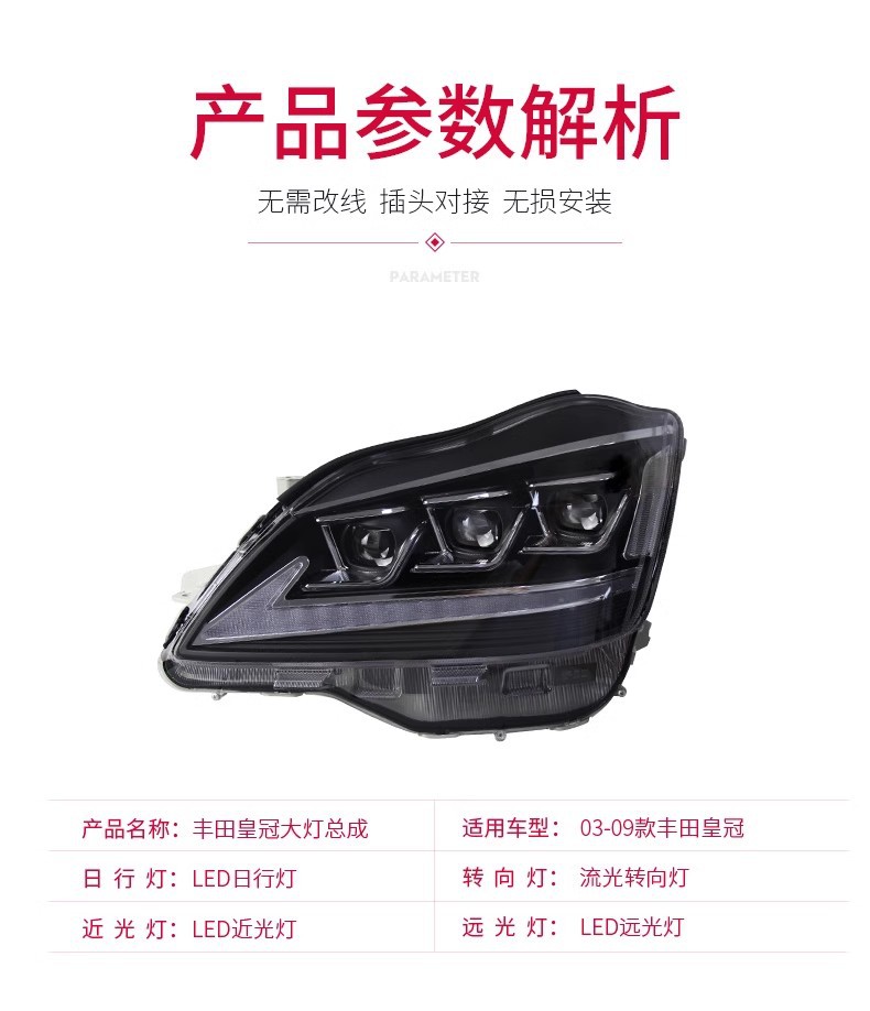 - Precise Fitment: Specifically engineered for the 2003-2009 Toyota Crown 12th Generation models, ensuring a perfect, direct-fit replacement for your original headlights.