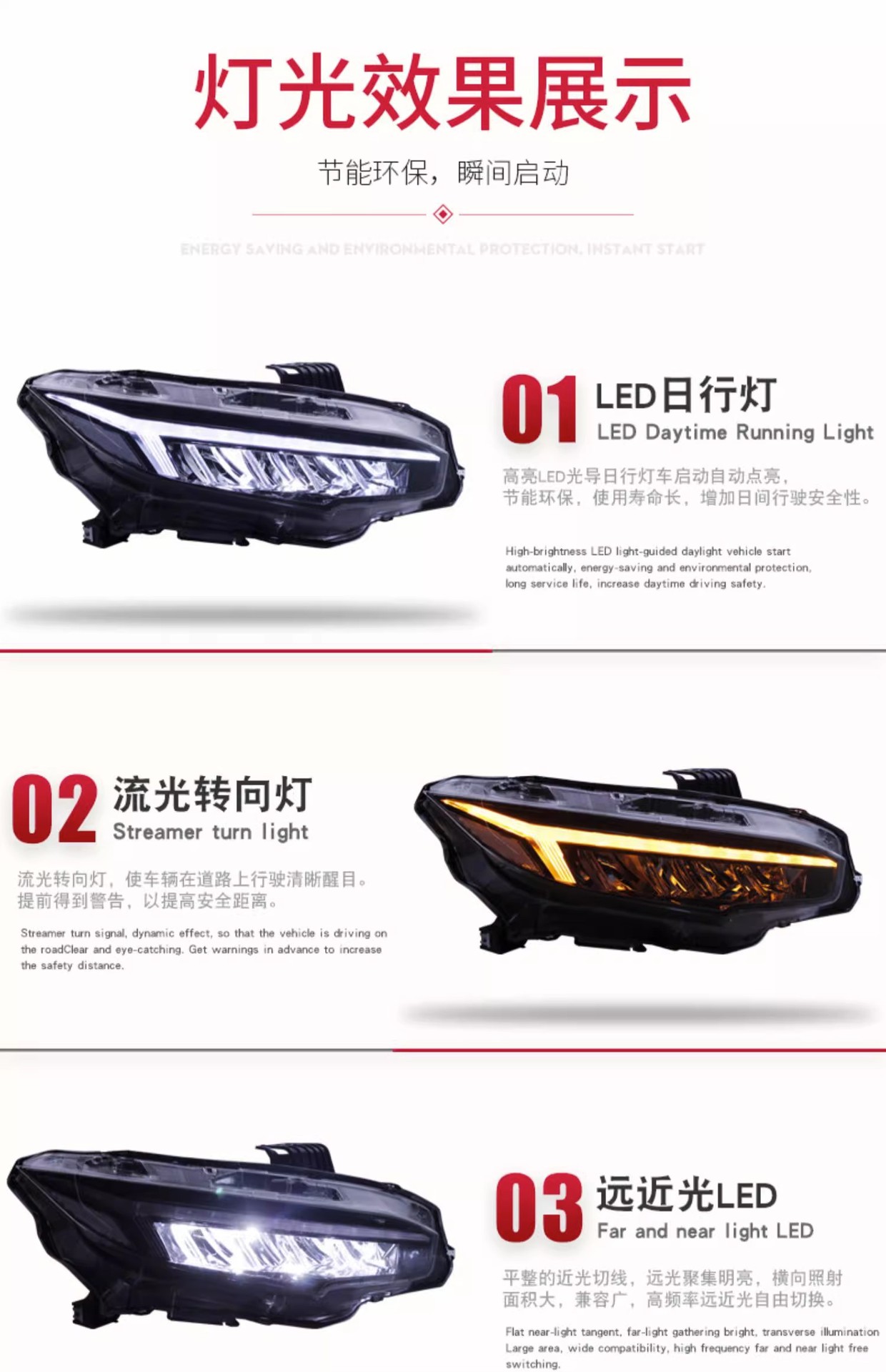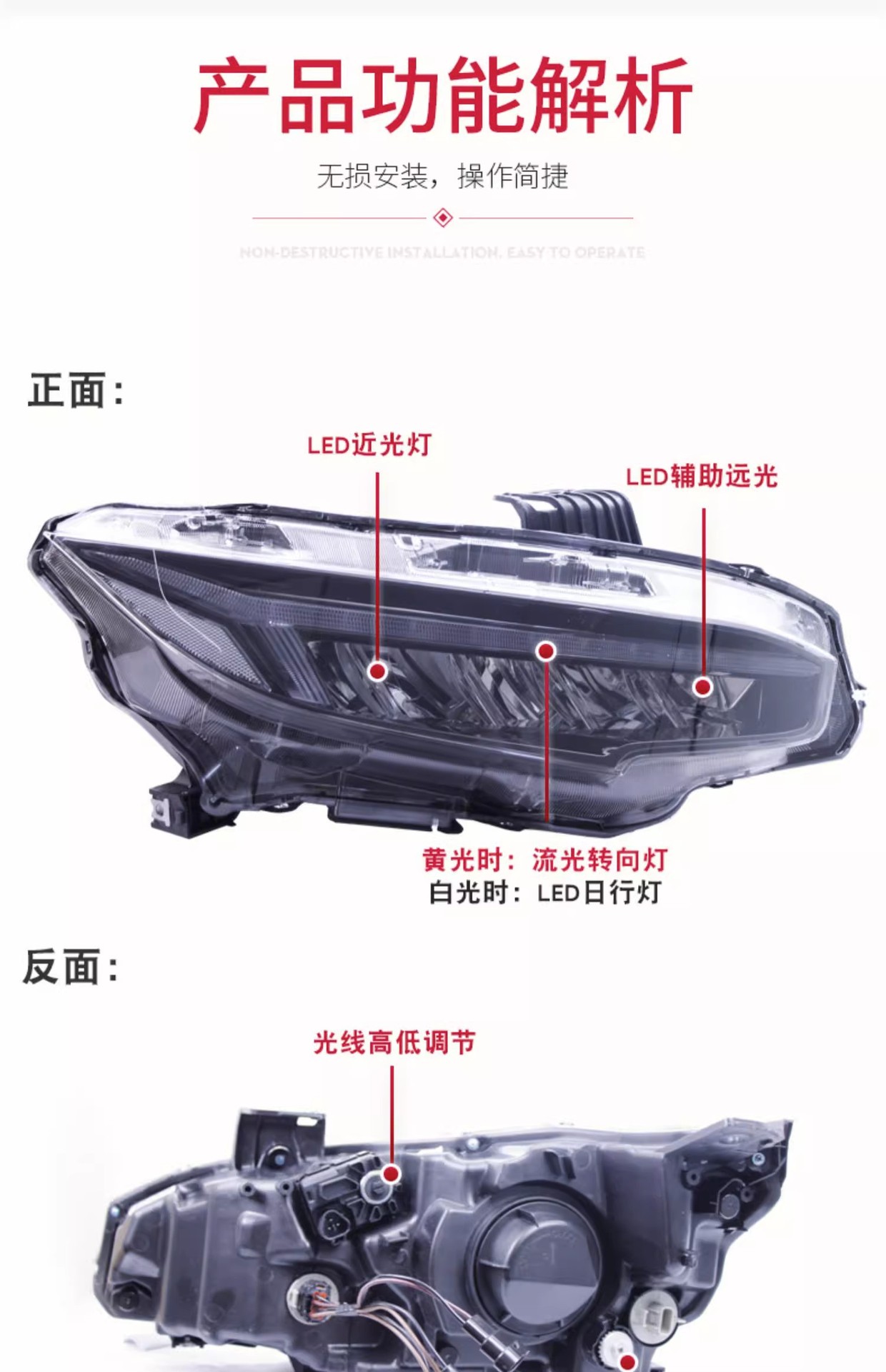 - Direct Fitment: A perfect replacement for Honda Civic 10th Generation models from 2016 to 2019. Enhances vehicle aesthetics and driving safety.