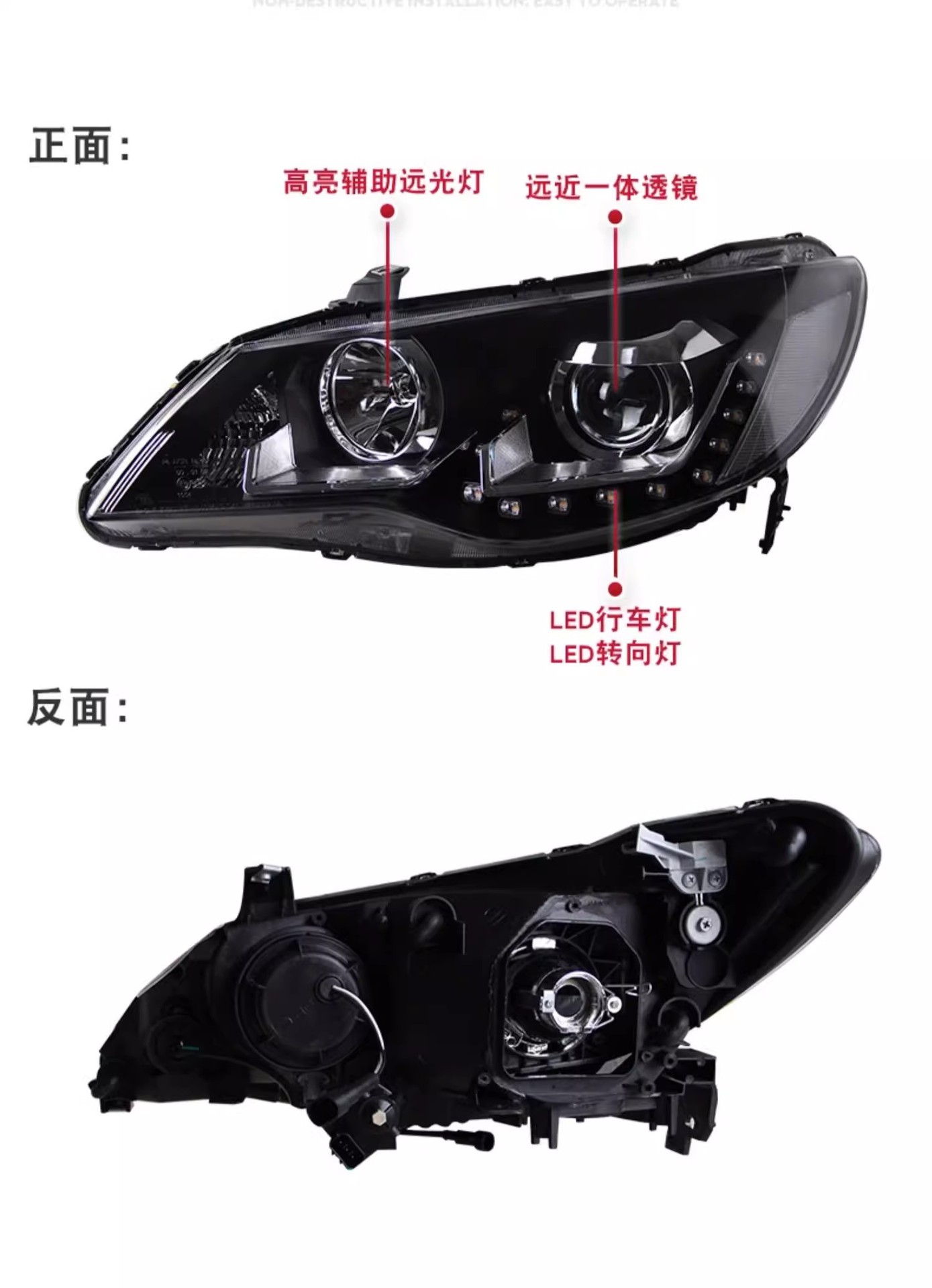 - Precise Fitment: Specifically designed for Honda Civic FD2 and Ci Ming models, ensuring a perfect, seamless replacement for your original headlight assembly without modification.