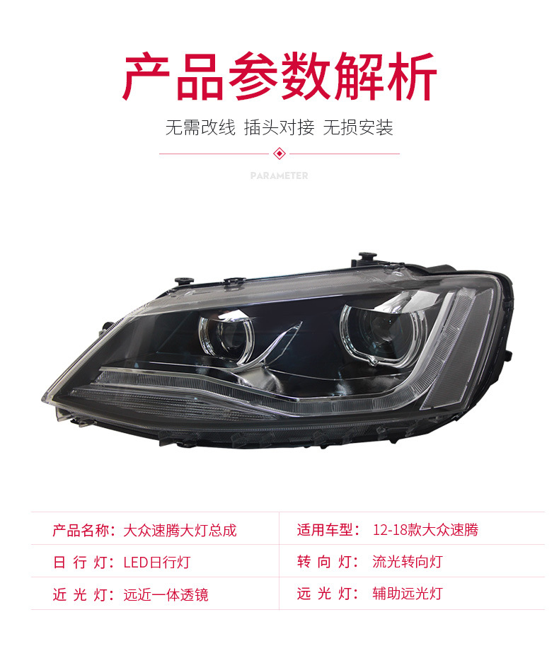 LED DRL Turn Signal Bi-Xenon Projector Headlight Assembly for Volkswagen Sagitar 2012-2018