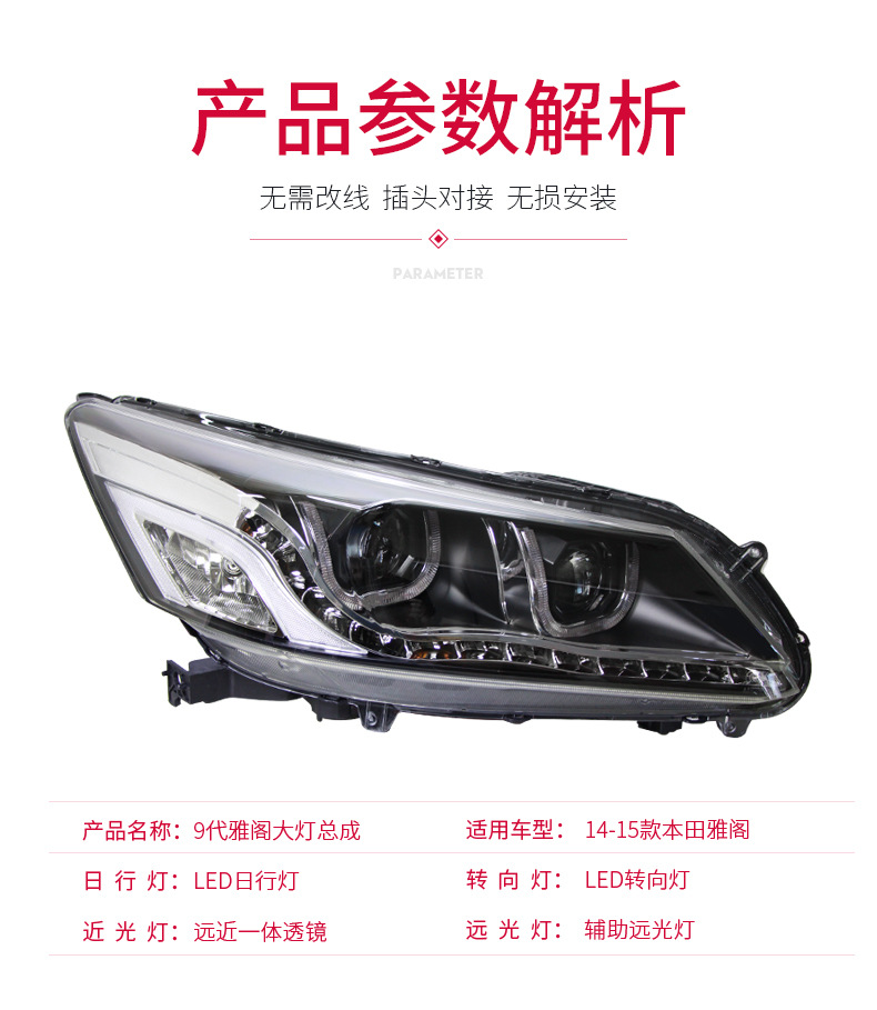 LED DRL Turn Signal Bi-xenon Projector Headlight for Honda 9th Accord