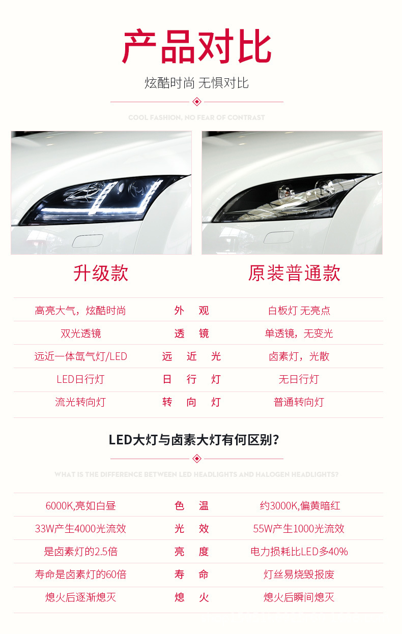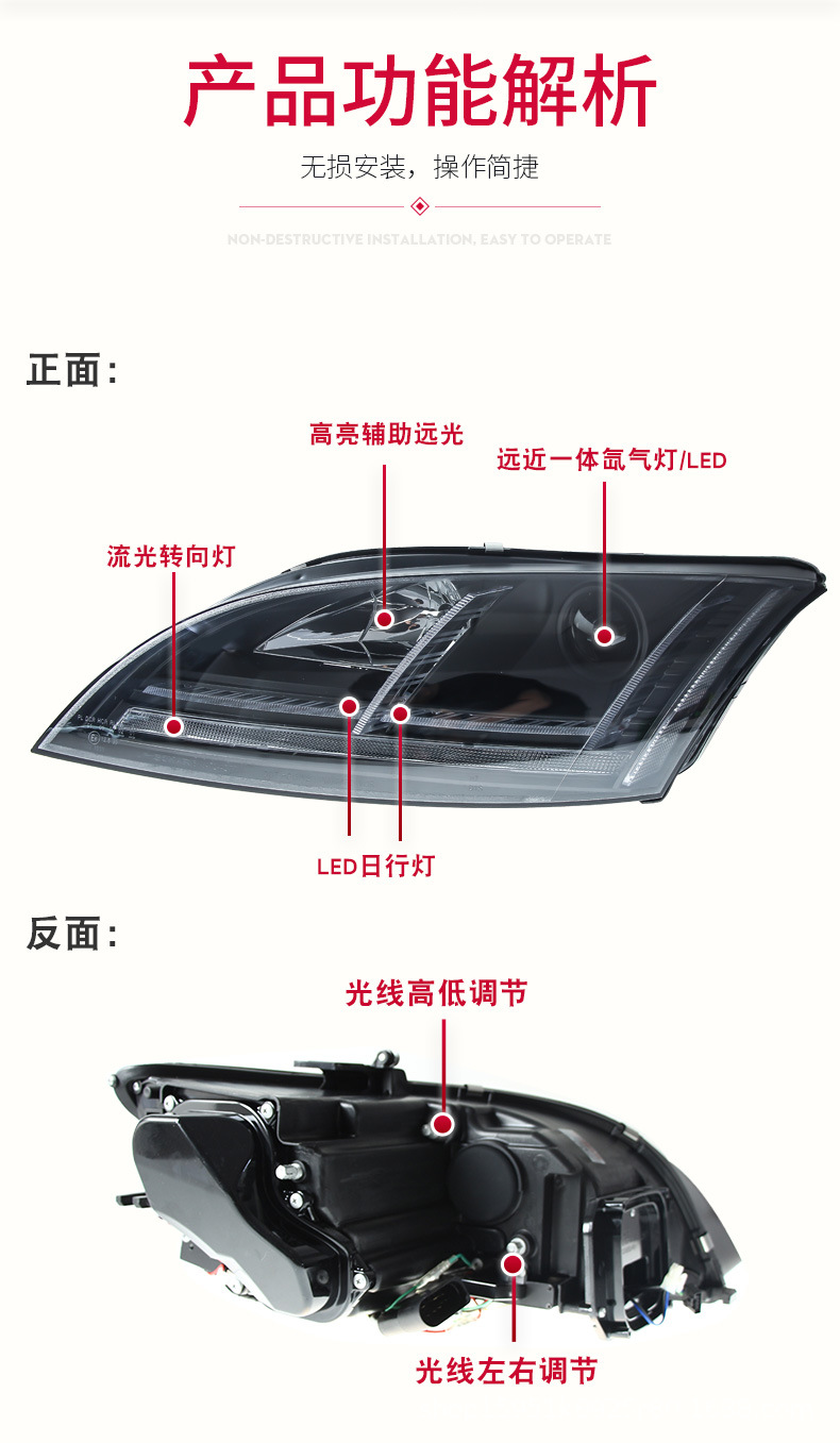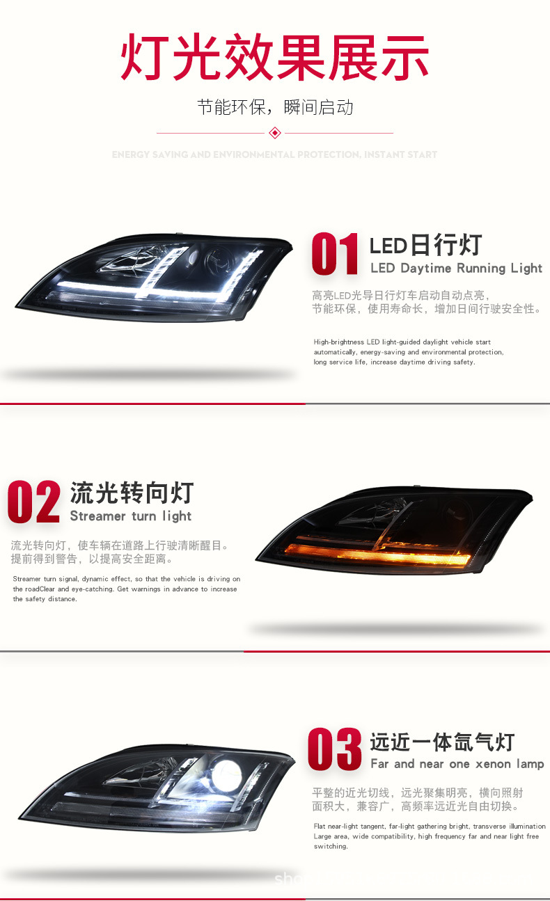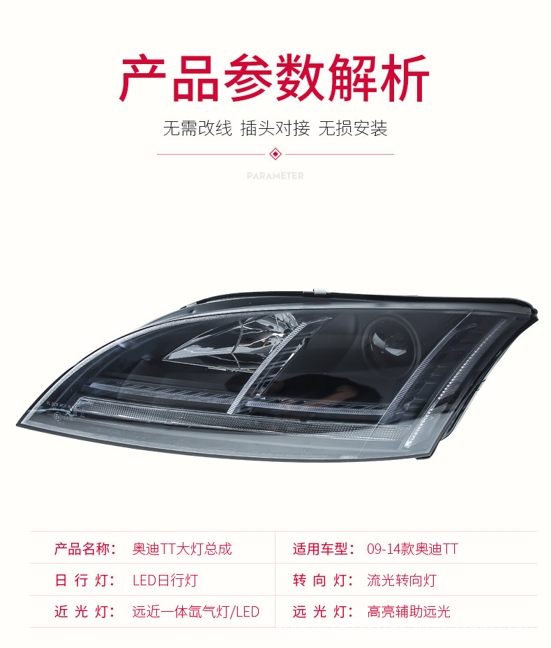 LED DRL Turn Signal Bi-xenon Projector Headlight Assembly for Audi TT (2006-2014)
