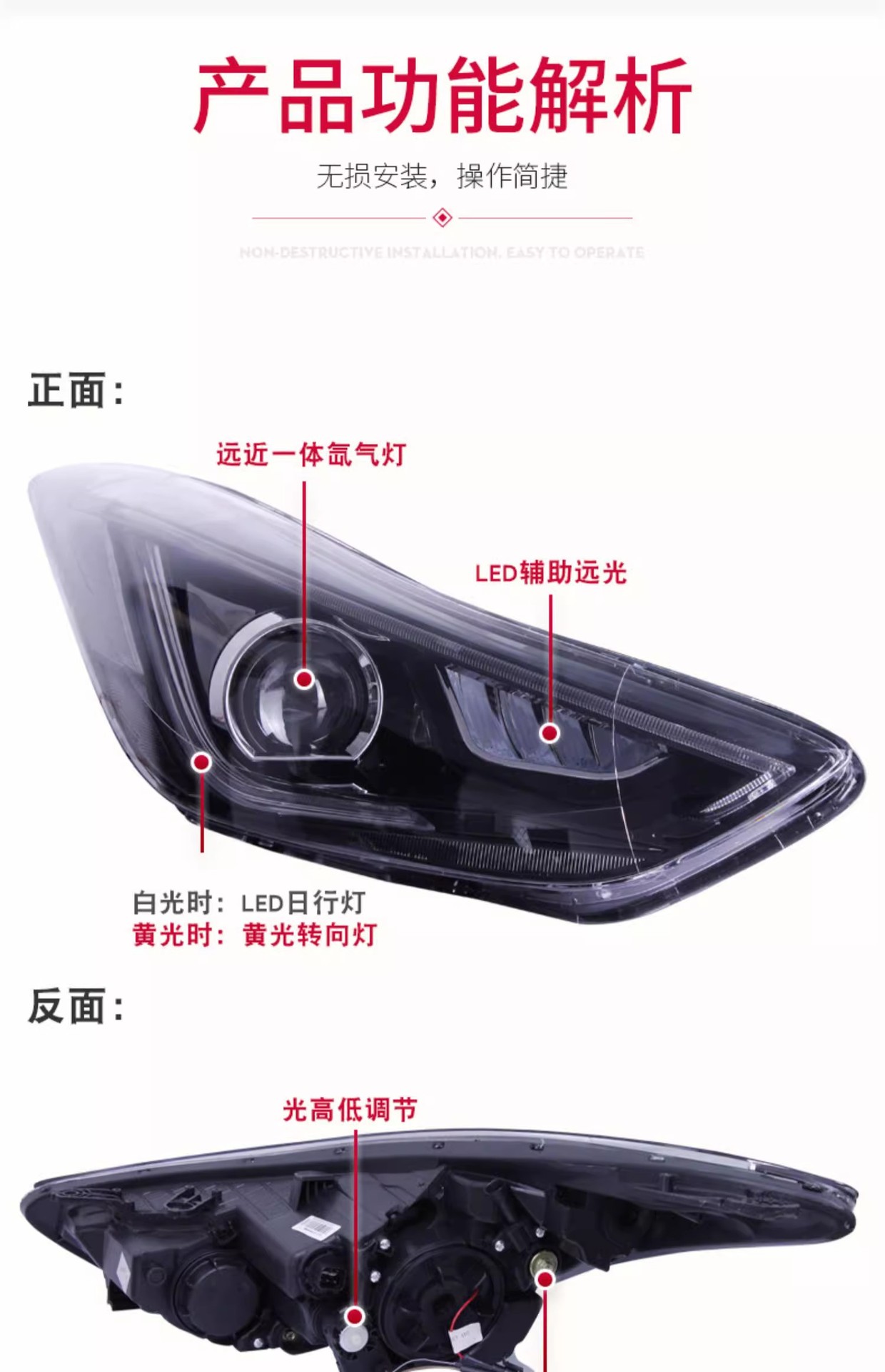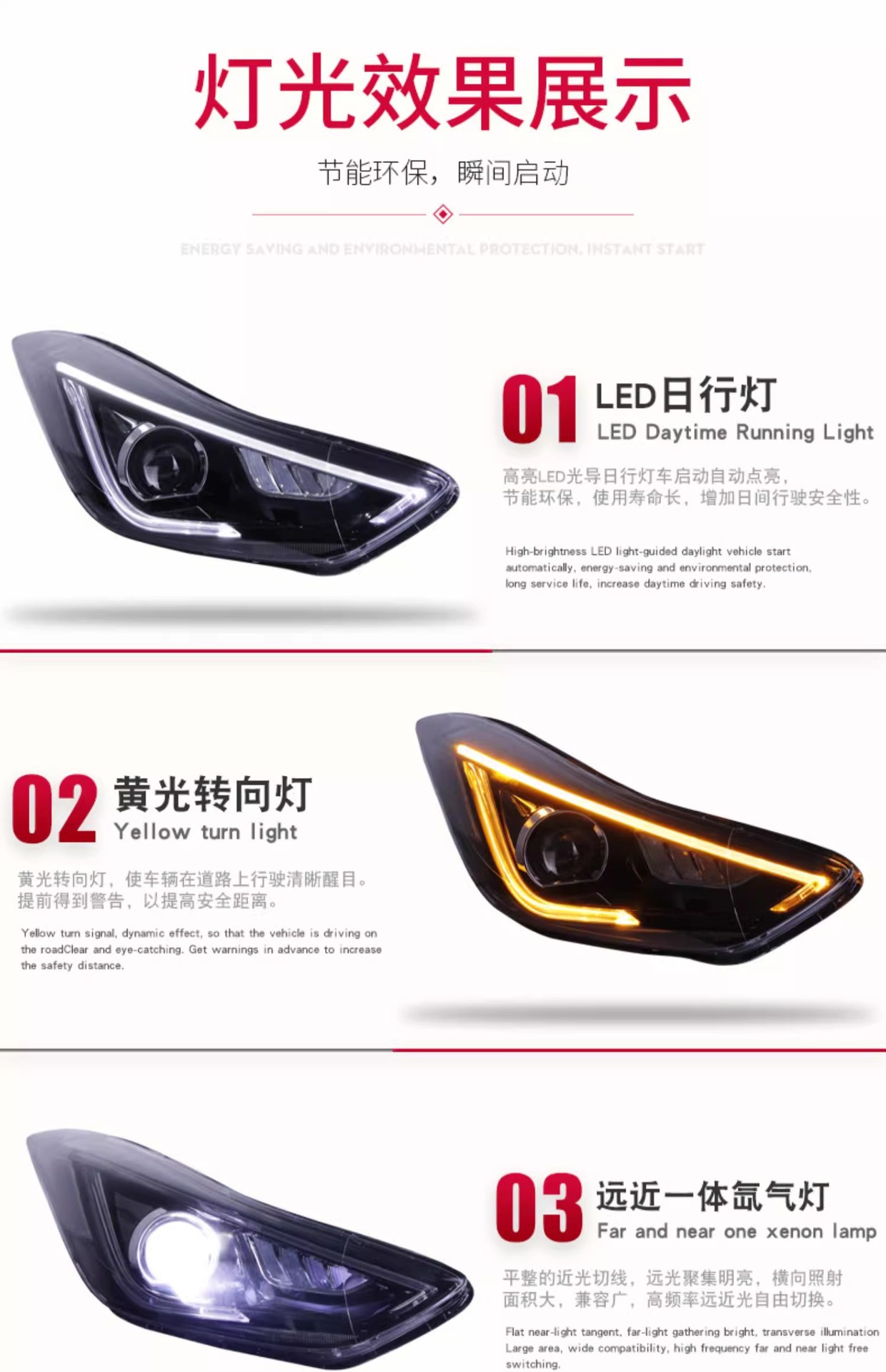 LED DRL Turn Signal Bi-xenon Projector Headlight for Hyundai Langdong