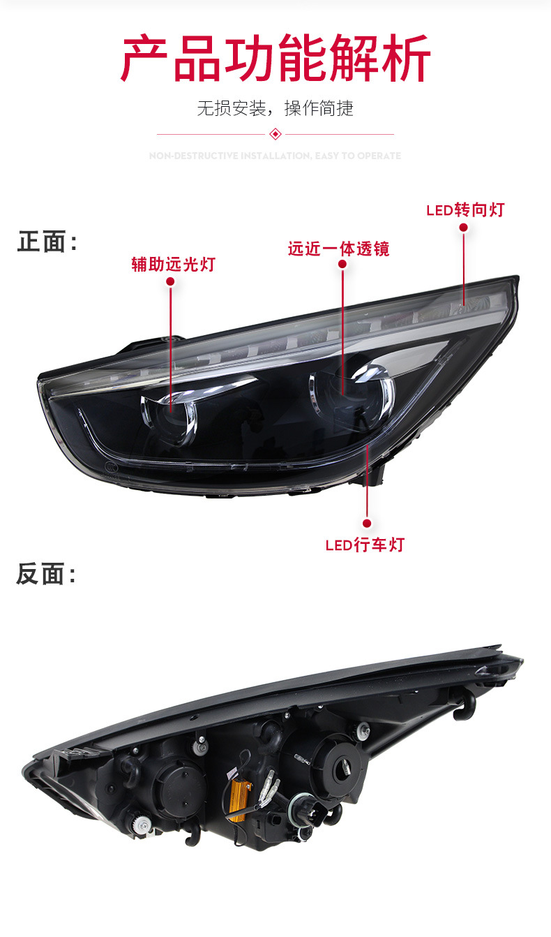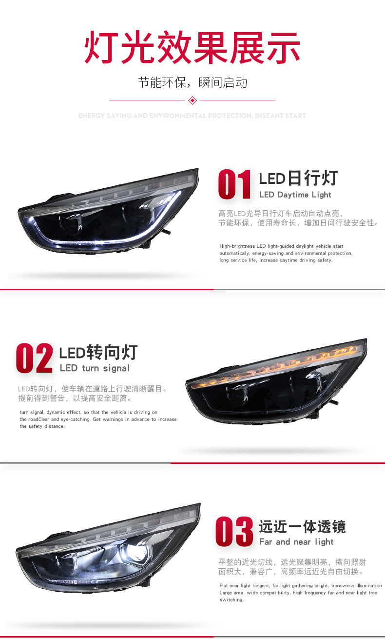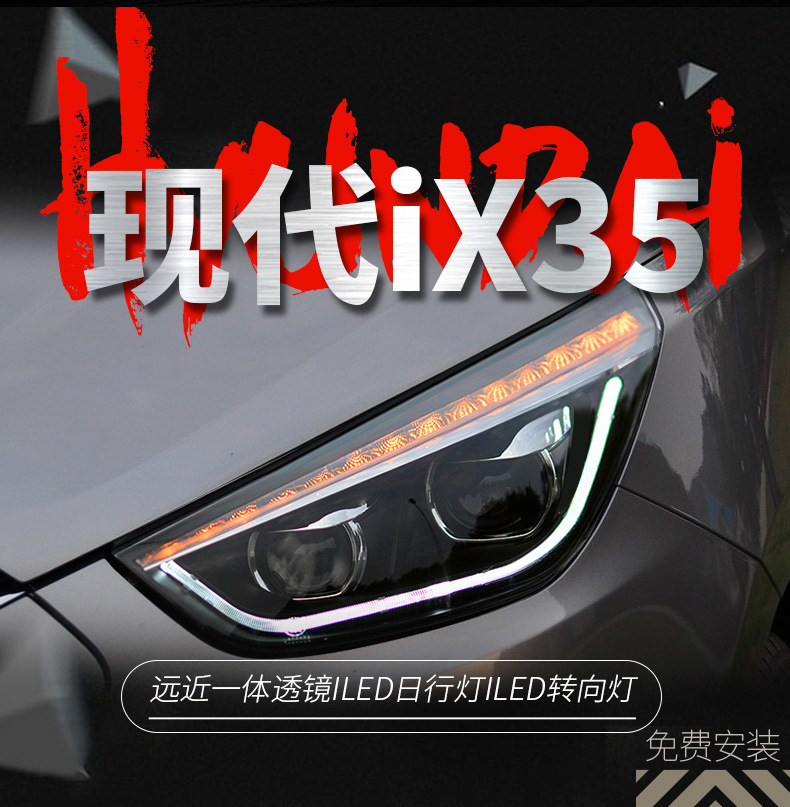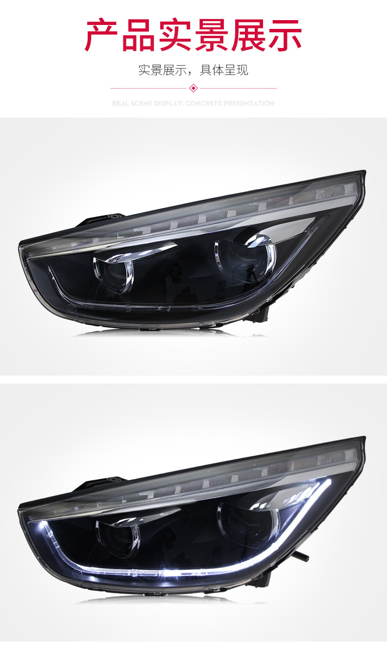 LED DRL Turn Signal Dual Projector Xenon Headlight Assembly for Hyundai IX35 2009-2015