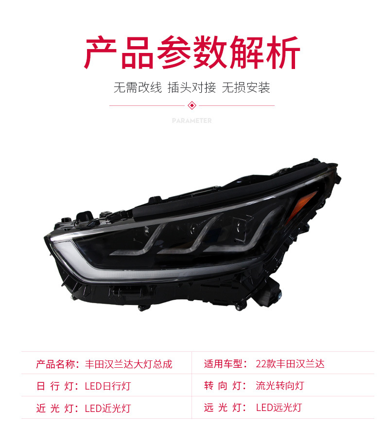 LED DRL Turn Signal Headlight Assembly with Lens for Toyota Highlander 2022 Crown Kluger