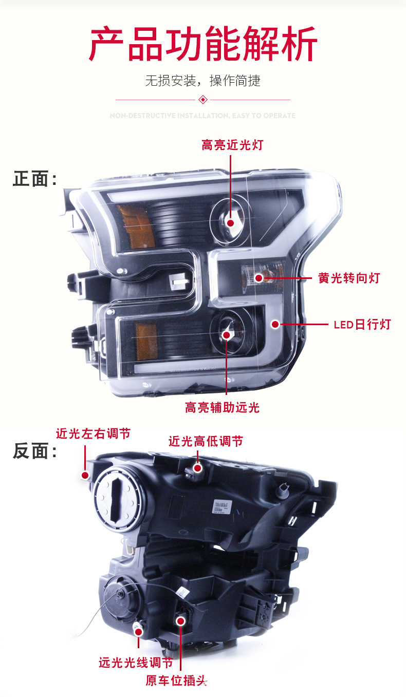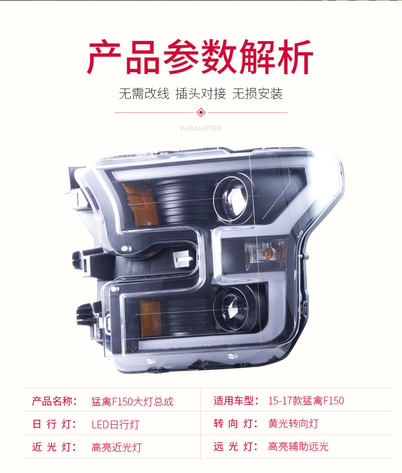 - Complete Headlight Assembly: Includes a full headlight assembly with integrated projector lens for optimized light output, offering a modern and aggressive look for your F-150 Raptor.