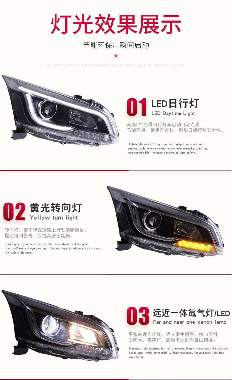 LED DRL Turn Signal Headlight Assembly for 2015 Chevrolet Cruze