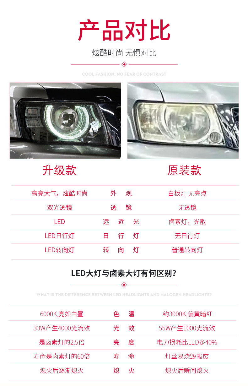 - Enhanced Aesthetics & Visibility: Features integrated LED daytime running lights (DRL) and turn signals, significantly upgrading your vehicle’s look and improving on-road visibility.