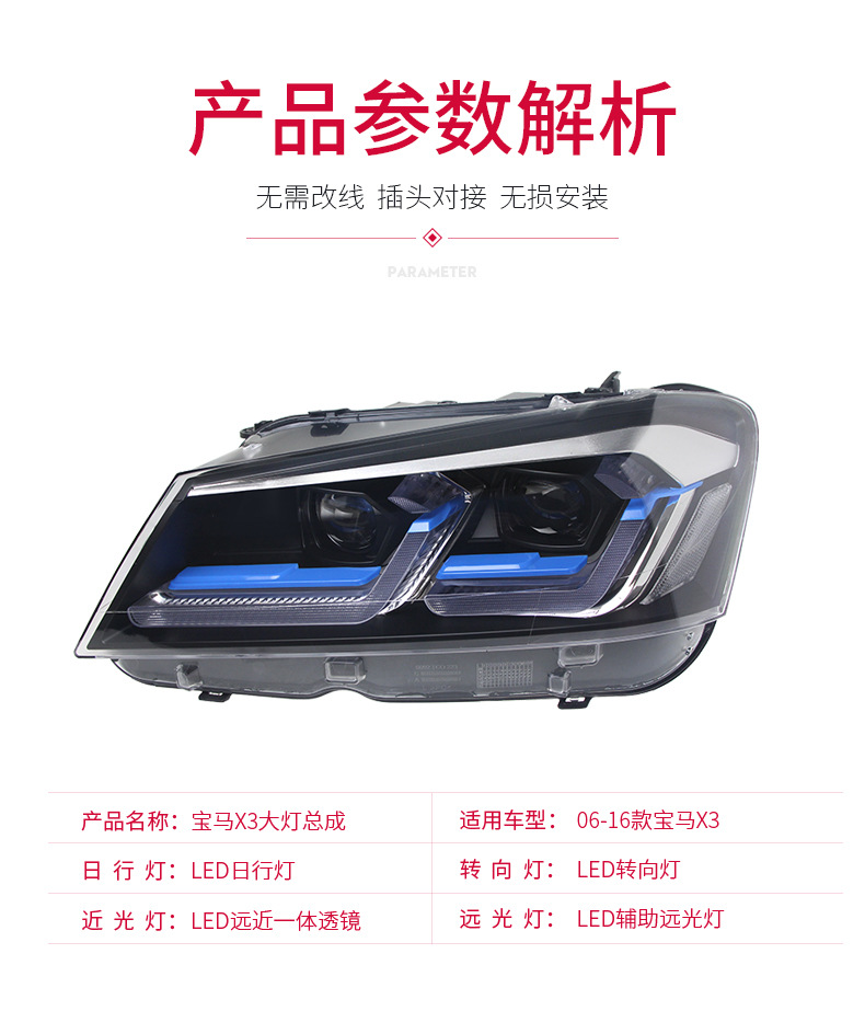 - Precise Fitment: Specifically designed for BMW X3 F25 models from 2010 to 2013, ensuring a perfect, direct-fit replacement for your original headlight assembly.