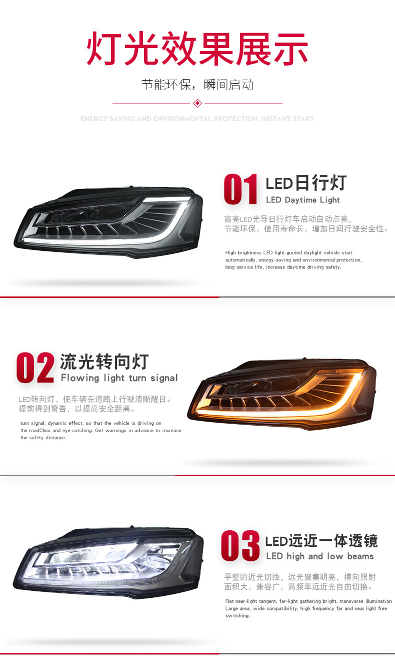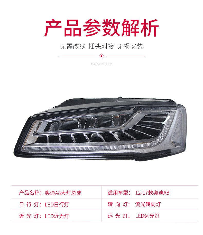 LED DRL Turn Signal Headlight Assembly for Audi A8 (2012-2018)