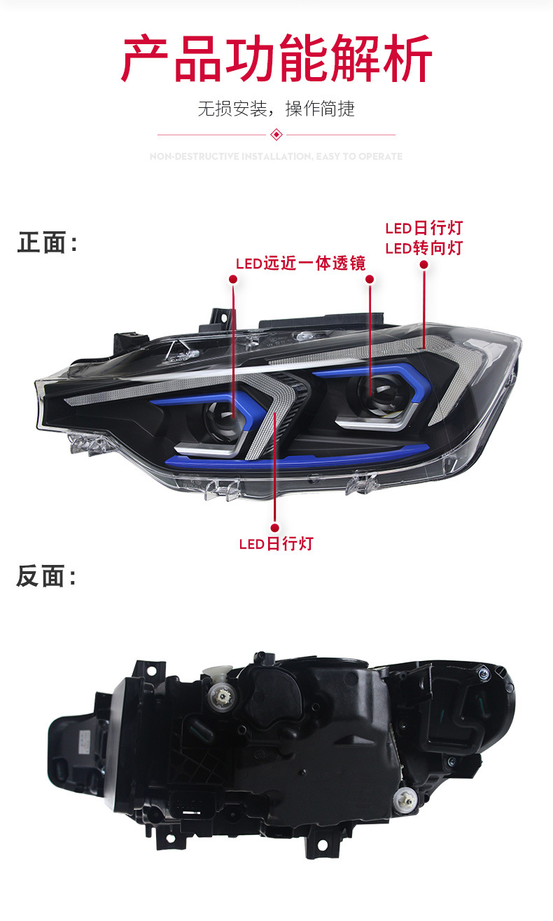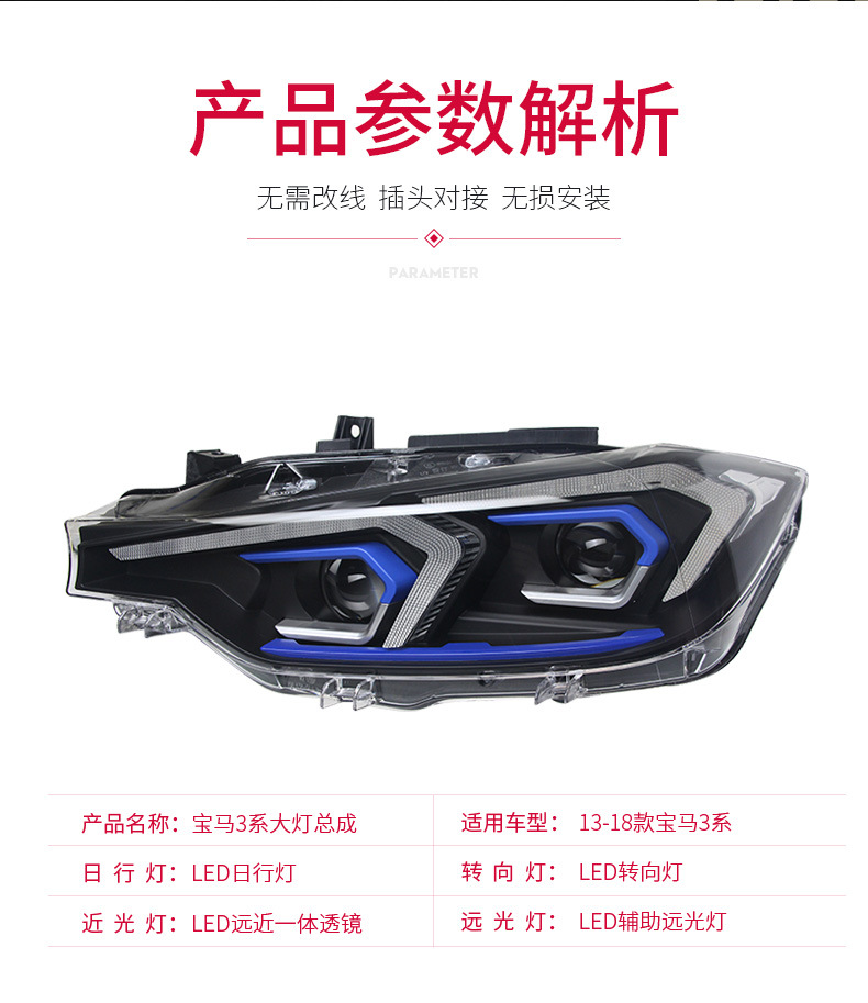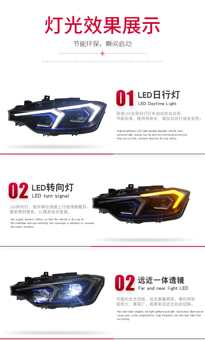 LED DRL Turn Signal Headlight Assembly for BMW 3 Series F30 F35 (2013-2018)